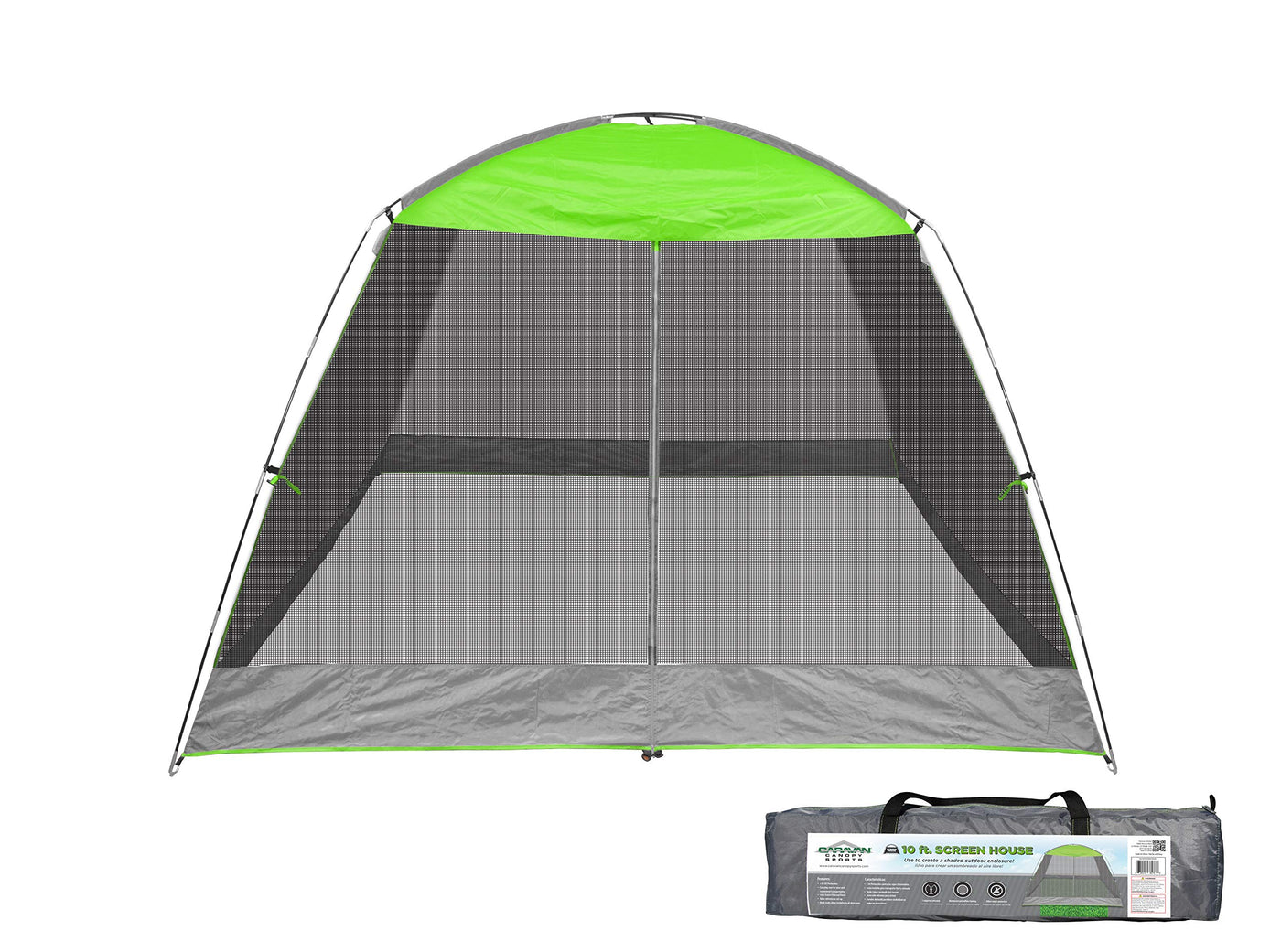 The Caravan Canopy 10Ft Screen House Lets The Breeze In While Keeping The Bugs Out. Setting Up And Securing The Screen House To Most Surfaces Takes Only Minutes. The Screen House Features 1 Zippered Entryway And 100 Square Feet Of Interior Space, Making It Ideal For Trips To The Beach, Picnics And Tailgates. The Caravan Canopy 10Ft Screen House Offers Instant Relief From The Sun'S Harmful Uv Rays. The Screen House Is Available In Lime Green With Charcoal Grey Finish. For Easy Transport, A Carrying Bag Is Also Included.