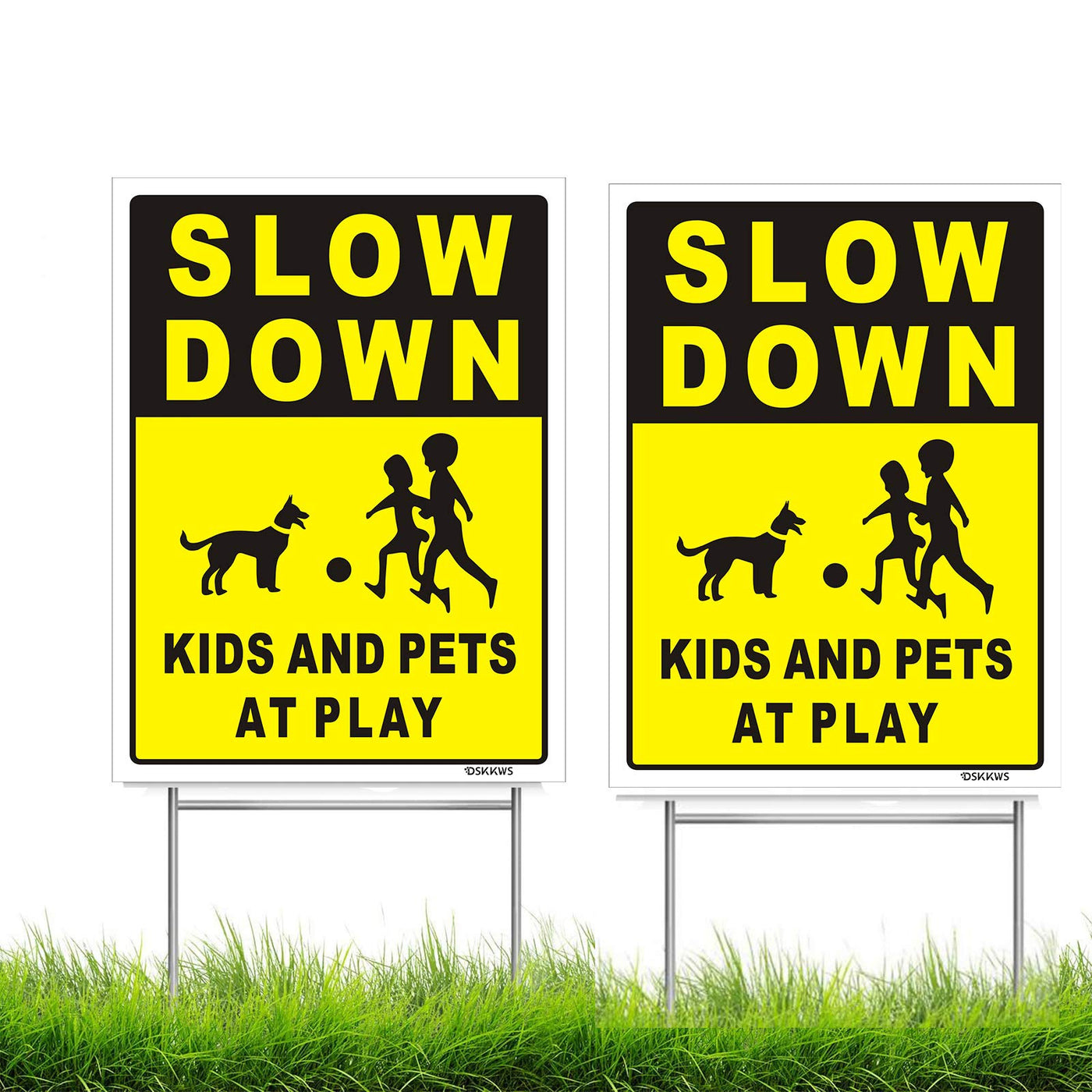 Slow Down Kids And Pets At Play' Yard Sign Is Made By Dskkws. &Nbsp;Slow Down Kids At Play Sign&Nbsp;Designed To Help Drivers Slow Down Near Areas That Have Children, Pets, Day Cares, Etc. Children At Play Safety Signs&Nbsp;To Protect Your Kids And Pets When Playing Around Your House. &Nbsp;Children Playing Sign For Street, Great For Parents, Home Owners Associations, Real Estate, Daycare, Childcare, Schools, Businesses, Parties, Neighborhood Associations &Amp; More! &Nbsp;- 5Mm&Nbsp;Corrugated Plastic&Nbsp;Slow Down Kids And Pets At Play&Nbsp;With Metal H Stake - Sign Size: 12X9X0.2&Nbsp;Inch, H-Stake Size:6X8Inch. - Double-Sided Same Print For Visibility From All Directions. - Weather Resistant,&Nbsp;Waterproof, Uv Protected And Bright Yellow &Amp; Black&Nbsp;For Visibility! -Quick &Amp; Easy To Install: --≫Use H Stake To Insert The Corrugated Plastic&Nbsp;Lawn Signs --≫Then Use The H Stake Plug In&Nbsp;Soil --≫Double Sided Could Available For Reading. - Weather Resistant, Tear-Proof, Uv Protected And Bright Green And Black For Visibility! What'S Included: - 2 X Slow Down Kids And Pets At Play&Nbsp;(12'X9') 5Mm Corrugated Plastic Yard Sign - 2 X Metal H-Stakes (6'X 8') Steel Rod