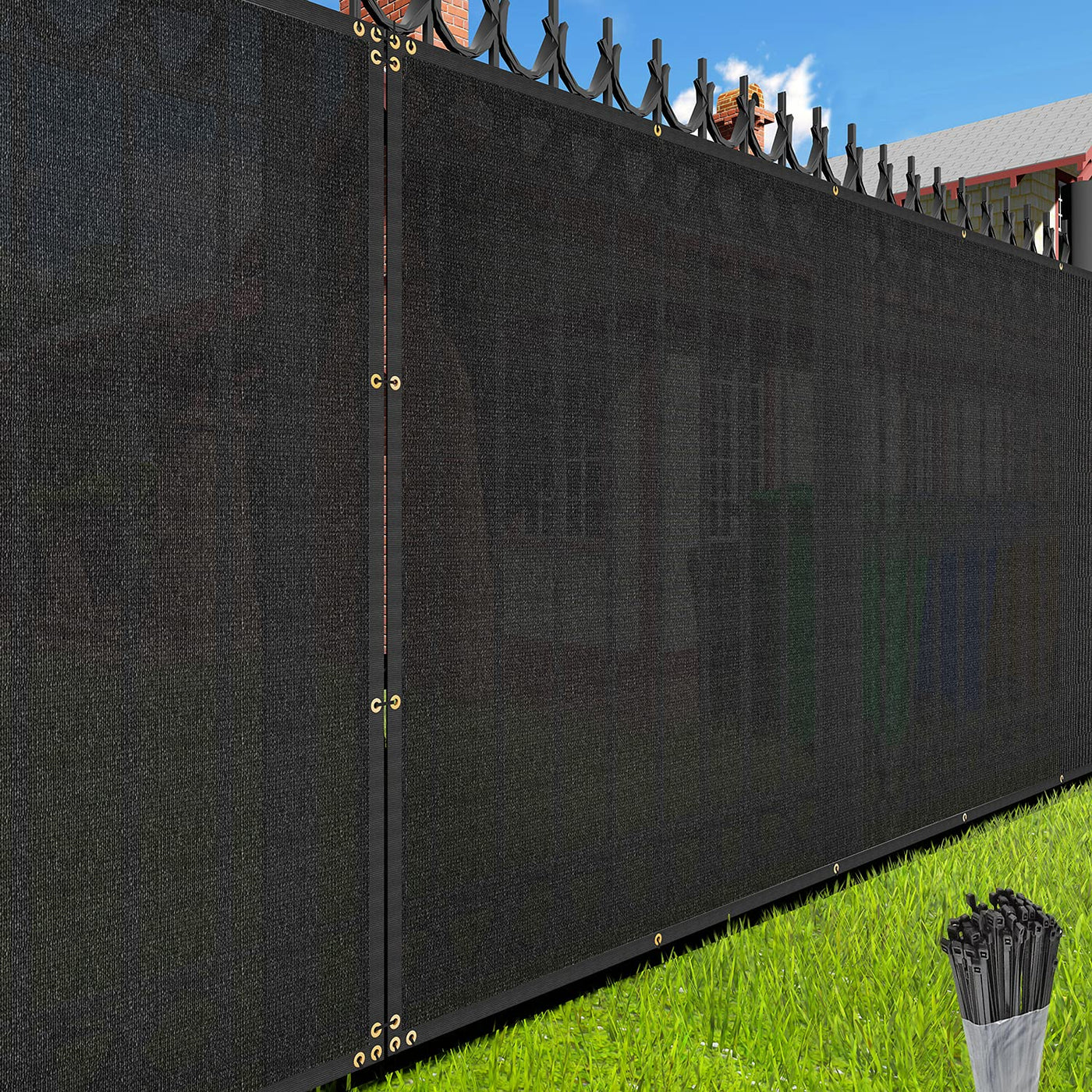 E&K Sunrise Fence Privacy Screen With Zipties, Black 6' X 277' Commercial Outdoor Backyard Porch Deck Shade Windscreen Mesh Fabr