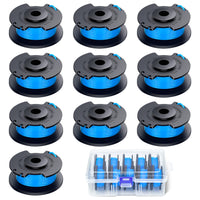 Eaone Line String Trimmer Replacement Spool For Ryobi Fits For Multiple Ryobi One+ String Trimmer Models: 18V, 24V,40V Make Work More Convenient And Have High Efficiency Specification: Weight: 330G Package Size: 18 X 125 X 6Cm Dimension: Line Length 11Ft, Diameter 0065 Inch Colors: Black Spool With Blue Line Package Include: 10 X Replacement String Line Spools, 1X Storage Box Warm Notes: 1 Please Read Tool Instruction Manual For Additional Safety Information Before Using This Accessory 2Strong Centrifugal Force And Cutting Fast During Using, Recommend To Wear Eye Protection And Long Pants To Avoid Unnecessary Injury Unplug Tool Before Changing, Installing, Or Removing Accessories 3 This Cordless Weed Eater Parts Refill Is Only Suitable For Tender Weed Grass Tough And Strong Weeds Will Been Recommended To Use Blades To Trim