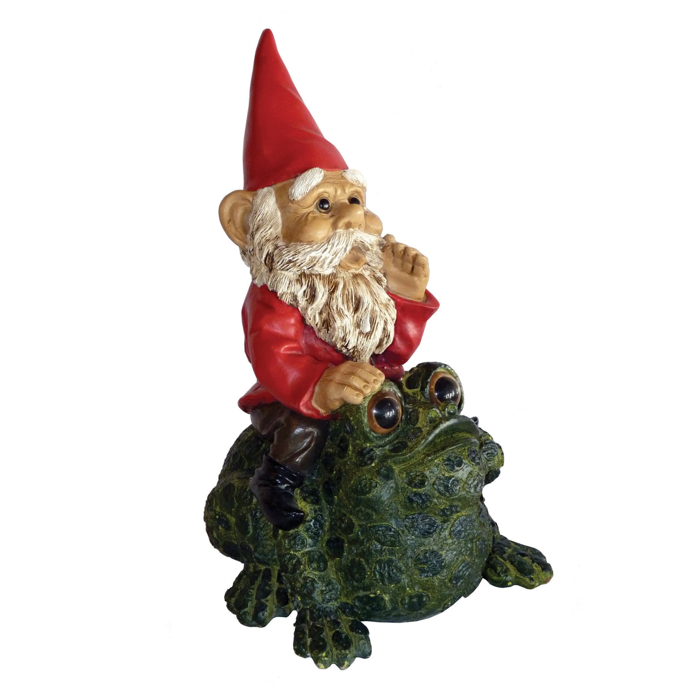 This Charming Gnome Is Part Of The Michael Carr Garrold Gnome Collection. Each Gnome Is Intricately Detailed With Stunning Lifelike Features. Garrold Is Seen Here On Top Of His Friend The Toad Getting Ready For A Ride Through The Forest. He Is Sporting His Trademark Red Gnome Hat And A Richly Colored Red Coat. The Durable Polyresin Has A U.V. Coating That Resists Cracking Or Chipping From The Sun. Dimensions: 7.91-Inch By 7.91-Inch By 13.04-Inch.