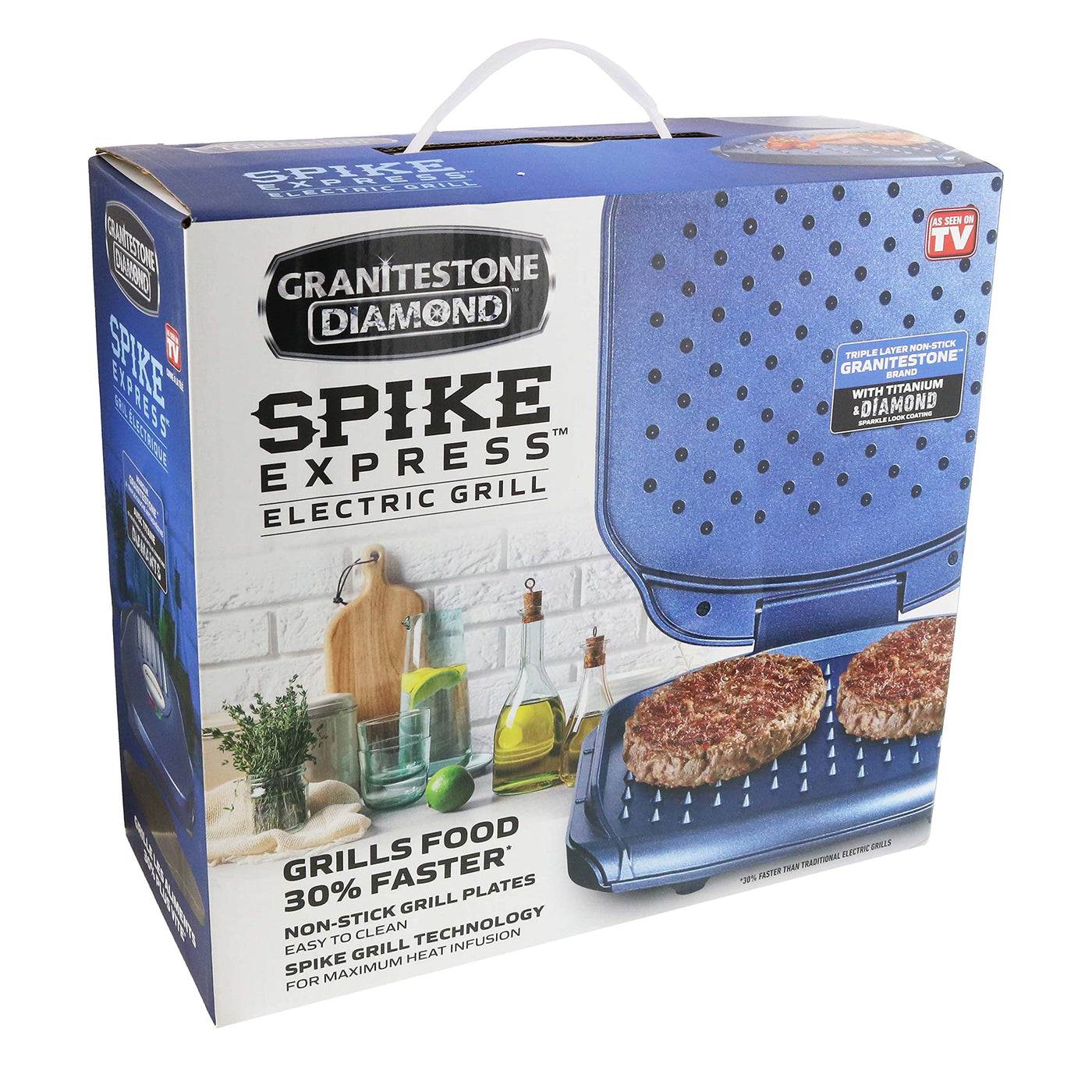 Granitestone Electric Grill Non-Stick Spike Express Electric Grill With Titanium Diamond Coating-Grills Food Grills 30% Faster-A