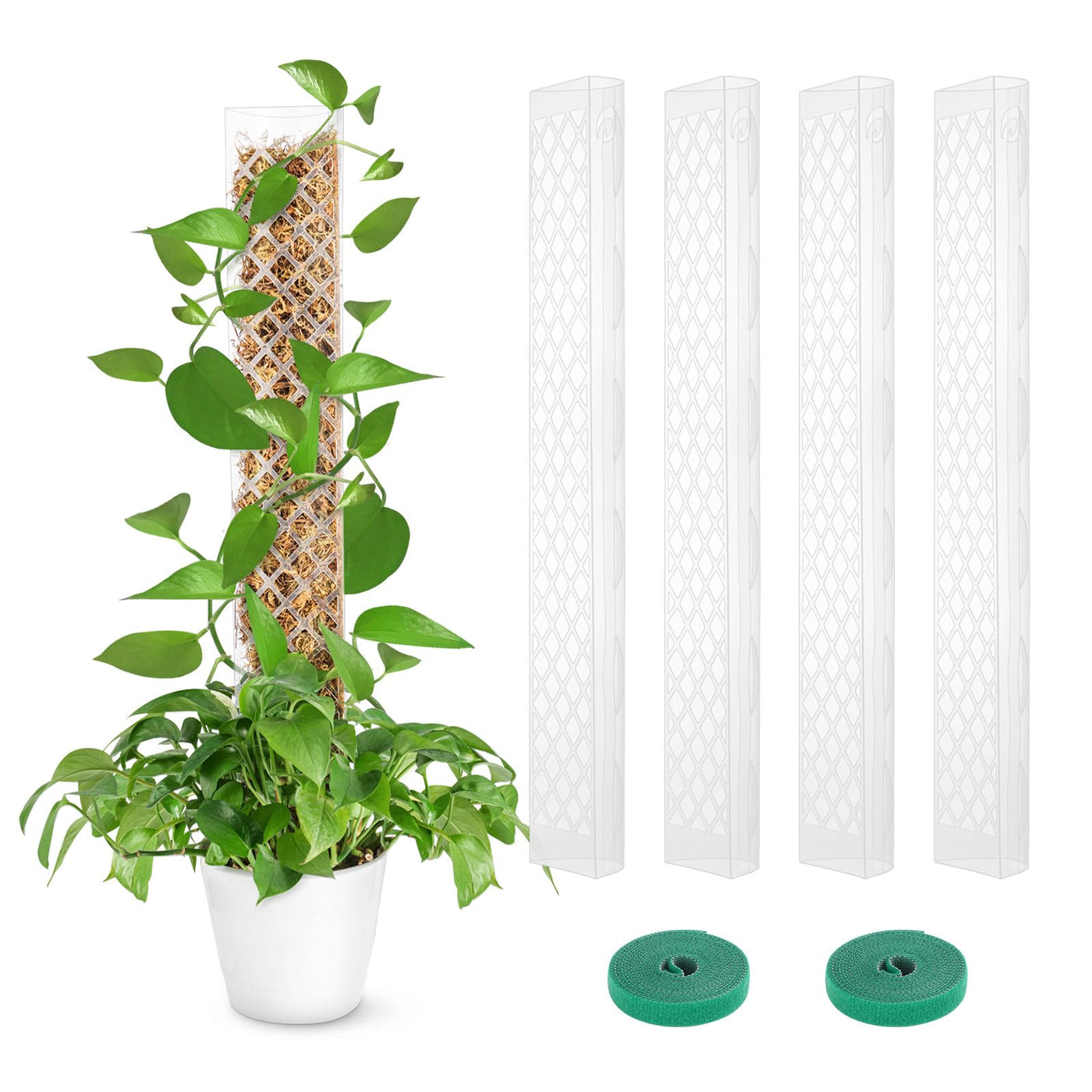 Growneer 4 Packs 24 Inch Plastic Moss Pole For Plants Monstera, Stackable Plant Support For Indoor Climbing Plants, Clear Plant Poles With 10Ft Garden Ties Work With Sphagnum Moss