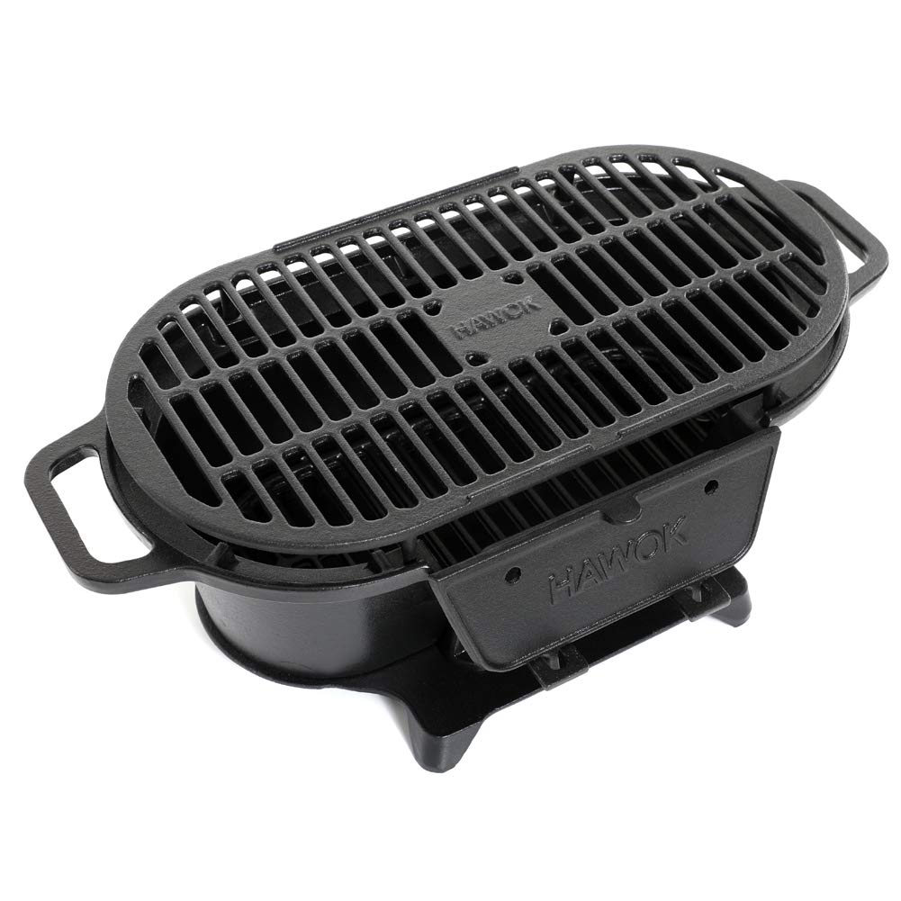 Hawok Cast Iron Enameled Grill Charcoal Hibachi-Style Grill For Picnics, Tailgaiting, Camping Or Patio.