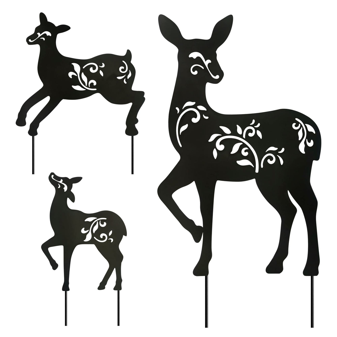 Hokfirm Metal Deer Stake, Outdoor Metal Animal Statue, Silhouette Deer Stake, Outdoor Decorative Metal Animal Stakes, Set Of 3