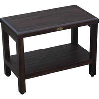 This 24 Length Classic Rectangular Teak Shower Bench Is Versatile For Indoors Or Outdoor Use As Bench Stool Footstool Side Table Or Shelving Unit The Included Standard Storage Shelf Provides Extra Storage For Toiletries Or Towels This Compact Size Of 24Length X 12 Width X 18 Height Provides A Relatively Compact Footprint That Will Fit In Most Spaces This Stool Includes Foot Leveling Pads To Provide Extra Flexibility And Stability To Allow Stabilization Due To Any Minor Slope In Shower Floors Features. Adjustable Height With Rubber Feet. Assembly Required. Water Resistentspecifications. Height 18 Inches. Width 14 Inches. Depth 24 Inches. Material Teak. Color Dark Brown. Finish Brown Finish. Country Of Origin Indonesia. Weight 19 Lbs