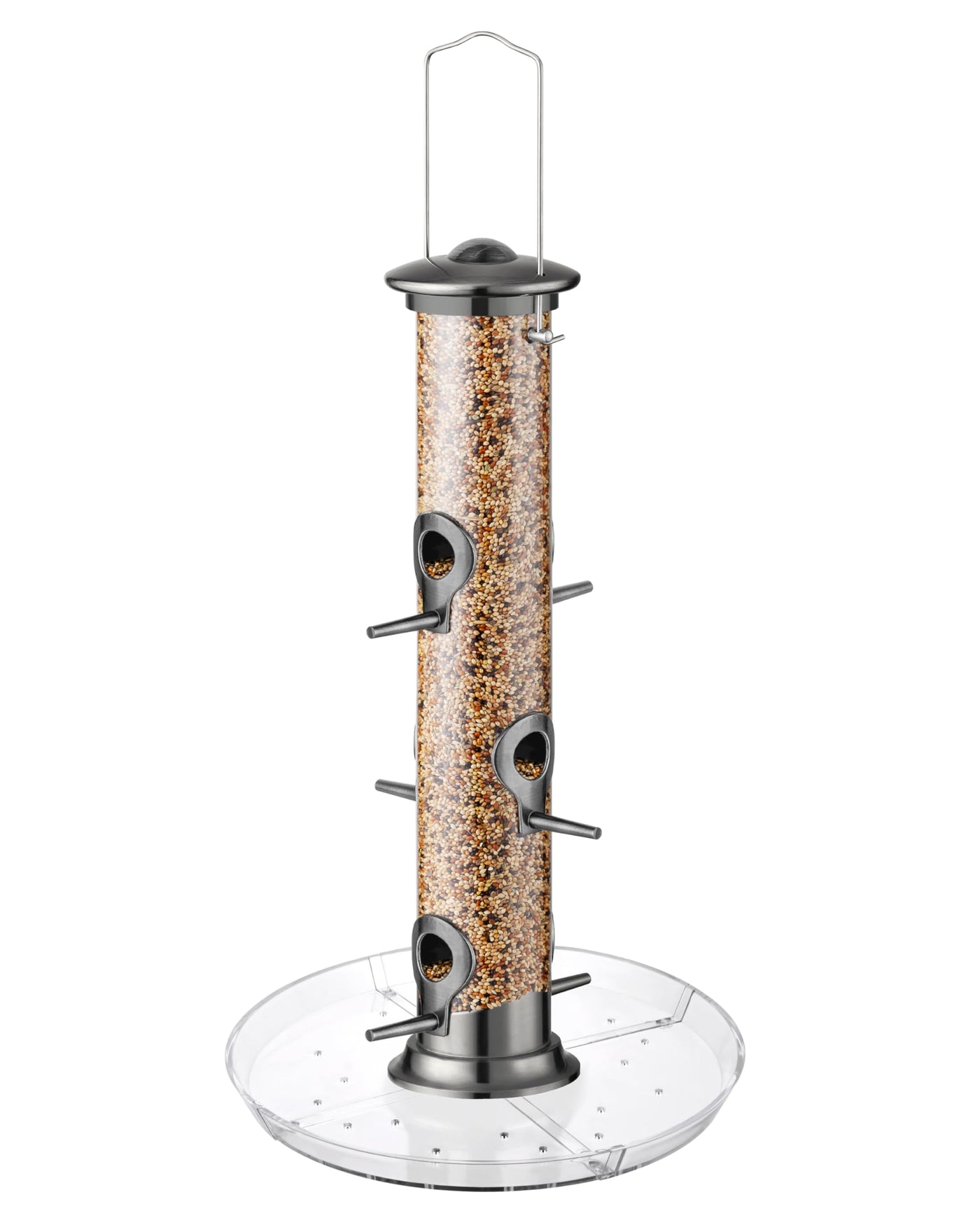 Iborn Bird Feeders Seed Catcher For Outside Hanging 6 Port Bird Feeder For Cardinal Birds Aluminium Metal,Brushed Black Finishin