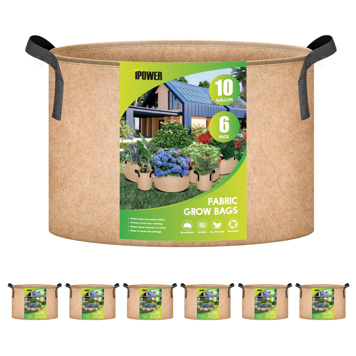 Ipower Plant Grow Bag 10 Gallon 6-Pack Heavy Duty Fabric Pots, 300G Thick Nonwoven Fabric Containers Aeration With Nylon Handles, For Planting Vegetables, Fruits, Flowers, Tan 2022 Version