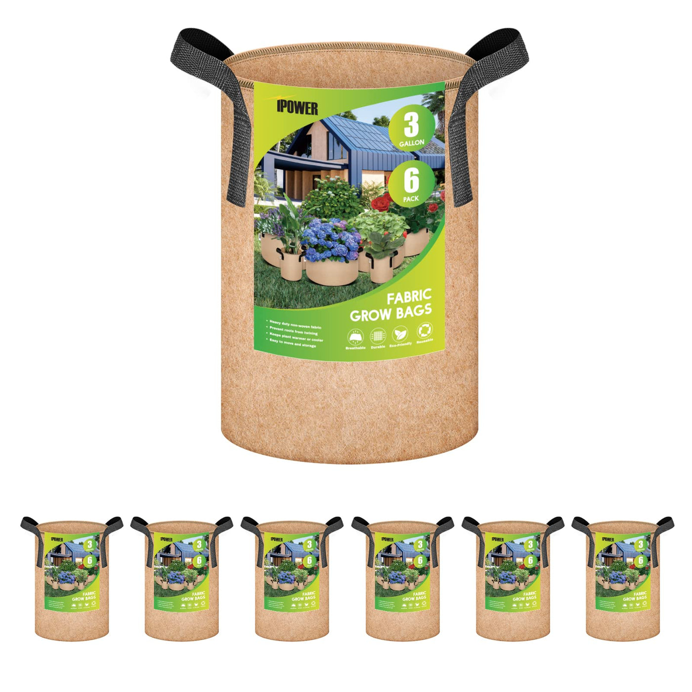 Ipower Plant Grow Bag 3 Gallon 6-Pack Heavy Duty Fabric Pots, 300G Thick Nonwoven Fabric Containers Aeration With Nylon Handles, For Planting Vegetables, Fruits, Flowers,Tan 2022 Version