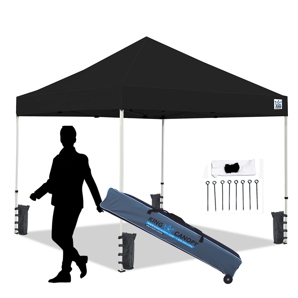 King Canopy Festival 10-Feet By 10-Feet Instant Pop Up With Weight Bags,Guy Ropes And Stakes, 1-Inch Steel Frame, Black, Fsshst1