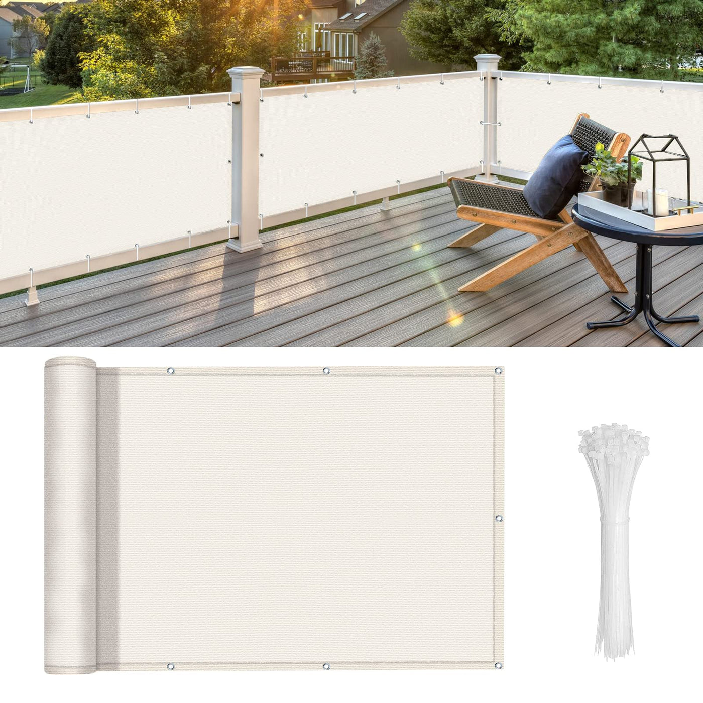 Love Story Beige Balcony Fence Privacy Screen 3'X16' Heavy Duty With Zip Ties For Chain-Link Fence Screen Commercial Outdoor Shade Windscreen Mesh Fabric With Aluminum Grommet 175 Gsm 90% Blockage Uv Love Story Offers Professional Screen Solutions For Gardens, Patios, Swimming Pools,Window Shade,Tennis Court Or Other Outdoor Areas.In Order To Satisfy Customers, Love Story Design And Improve The Specifications And Performance Of The Fence Screen. Diversified In Size And Color To Better Meet Customer Requirement And Protect Guest Privacy. We Hope That Customers Can Enjoy Their Private Space And Life. Specifications Shape: Rectangle Size: 3'X16' Color:Beige Material: High Density Polyethylene(Hdpe) (175Gsm) Uv Protection Rate: Up To 95% Shading Rate: 90% Accessories: Zip Ties*25 Package:Packed In Pe Bags Installation Instructions Use Zip Ties Of The Accessories, Pass Through The Aluminum Grommet, And Fixed On The Fence Screen.In Addition, Do Not Pull Too Tightly During Installation And Please Keep Away From Open Flames. Warm Tips Due To Differences In Computer Monitors, It May Have Little Color Differences Between The Actual Product Compare With Your Screen. Its Hard To Avoid, Although The Digital Images We Show Are Close To The Real Product.
