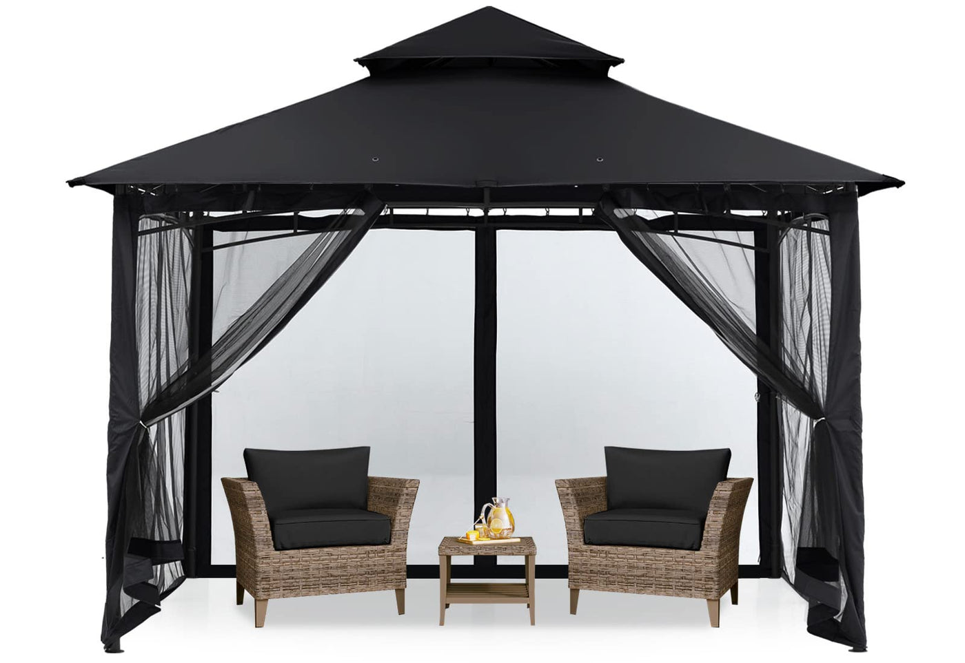 Mastercanopy Outdoor Garden Gazebo For Patios With Stable Steel Frame And Netting Walls (8X8,Black)
