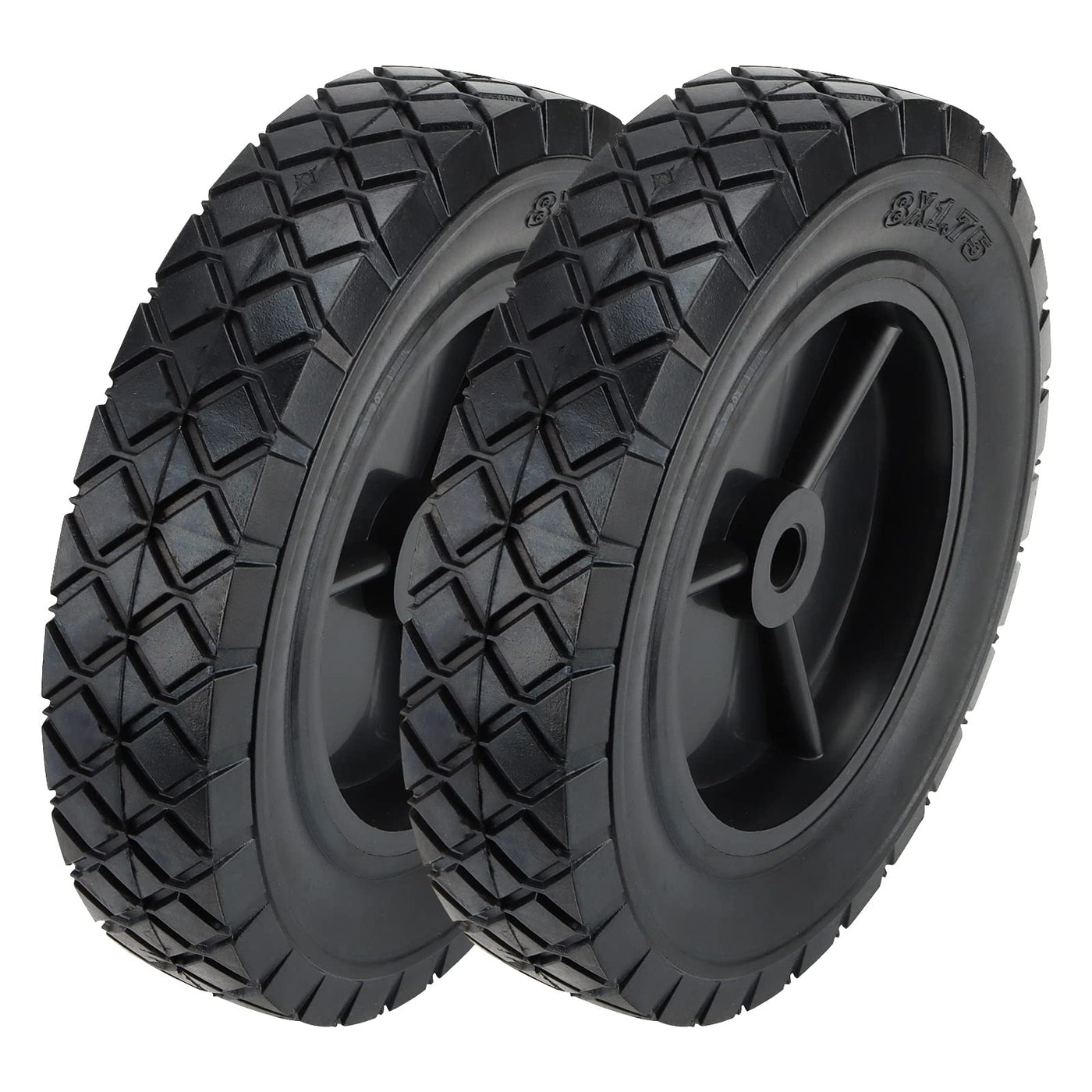 Mouyat 2 Pack 8 X 1.75 Inch Solid Hand Truck Wheel, 1/2 Inch Axle Heavy Duty Universal Lawn Mower Wheels, Replacement Tires For