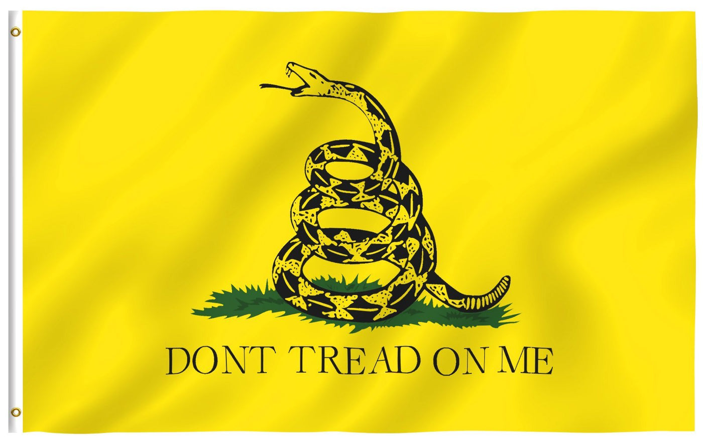 Don'T Tread On Me! Show Your Tea Party Support The Gadsden Flag. The Don'T Tread On Me Flag Is Also A Way To Show Your Support Of The Us Marine Corps. 3' X 5' Flag. Traditional Gadsden Flag. Made Of Polyester. Canvas Header And Brass Grommets. The Gadsden Flag Is A Must Have Decoration At An Tea Party Event. Part Of Decorations > Flags