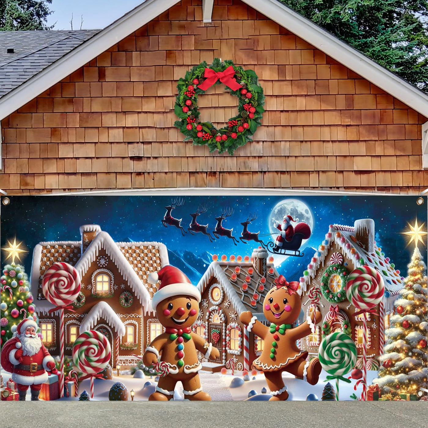Preboun 7 X 16 Ft Christmas Gingerbread House Garage Door Decoration Gingerbread Garage Door Banner Cover Peppermint Candy Cane