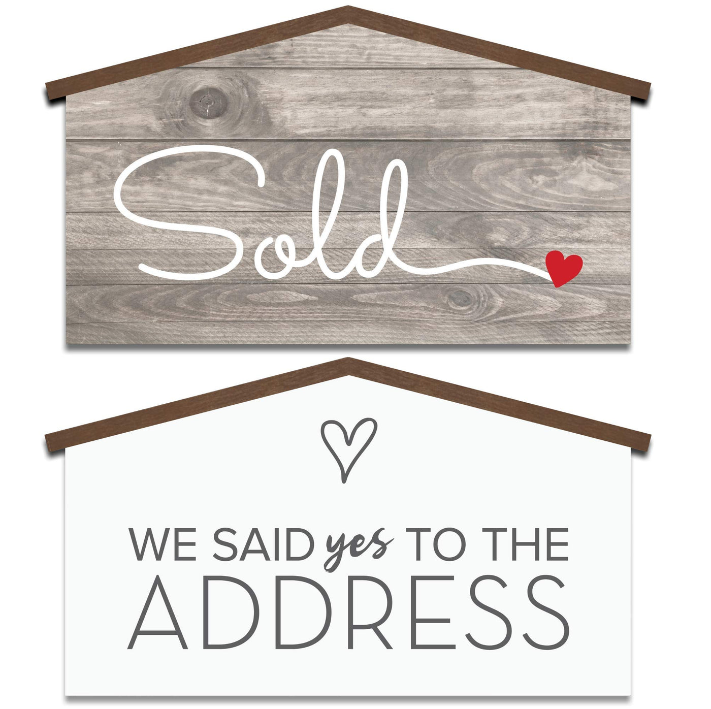Real Estate House Shaped Sold Sign - We Said Yes To The Address - Agent Supplies And Signs- Photo Prop For Realtor - New Homeown