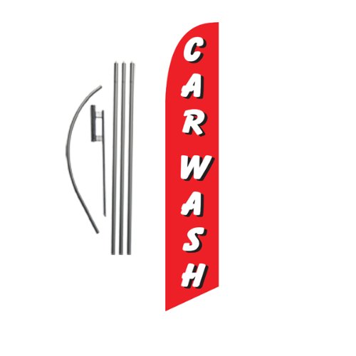 Red And White Car Wash Advertising Feather Banner Swooper Flag Sign With Flag Pole Kit And Ground Stake