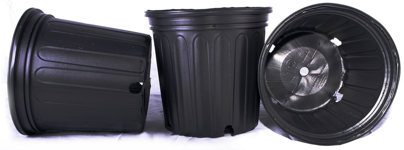 Nursery Pots Are Great For Use In Any Garden Indoors Or Outdoors And They Can Be Cleaned And Reused Again And Again. These Blow-Molded Pots Are Known As A 2 Gallon Trade Pot And They Are Used By Nurseries. These Pots Actually Hold An Actual Volume Of: 1.593 Gallons Gallons And Not 2 Full Gallon . Pot Dimensions (9 Inch Diameter X 8.5 Inch Depth) And The Have 5 Drain Holes.