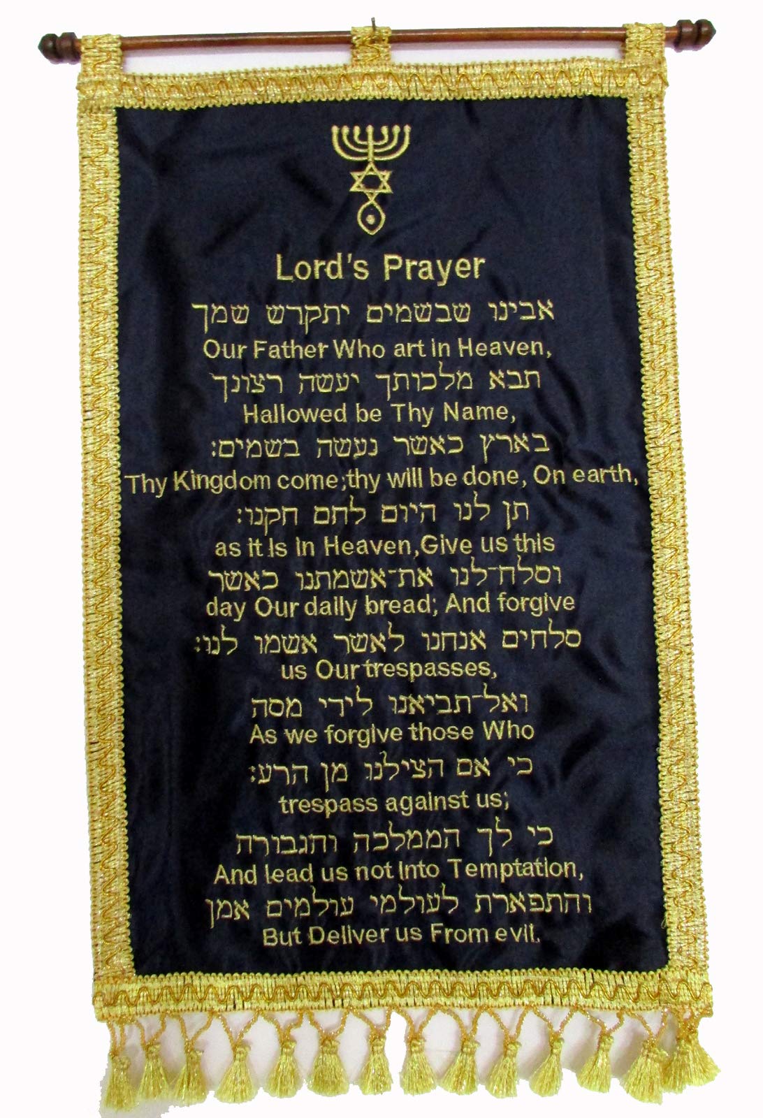 This Banner Features The Lord'S Prayer In English & Hebrew - Done With Rich Gold Embroidery And Embellishments And Tassles. A Rod Is Included For Hanging. This Banner Will Inspire And Uplift All Who See It. Messianic Hebraic Roots Symbol Featured On Top