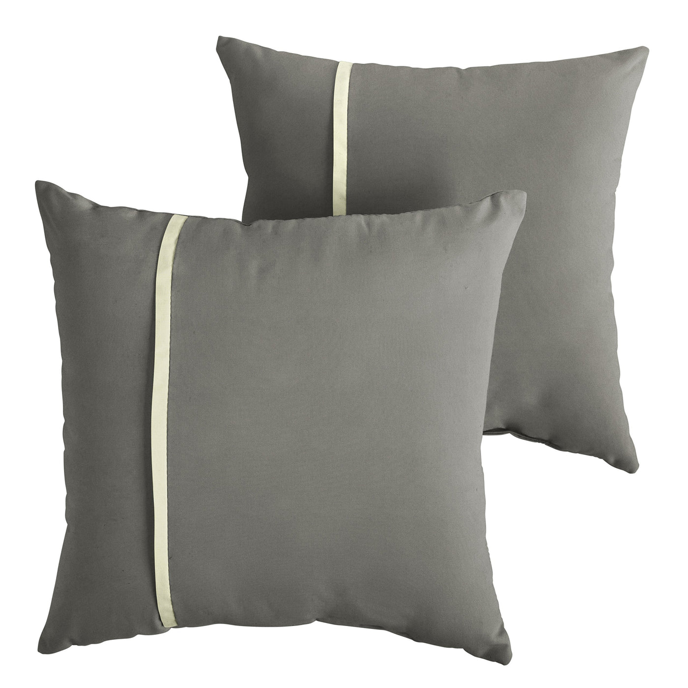 Sorra Home Indoor Outdoor Sunbrella Square Pillows, Set Of 2, 20 X 20, Canvas Charcoal Grey & Canvas Natural Ivory