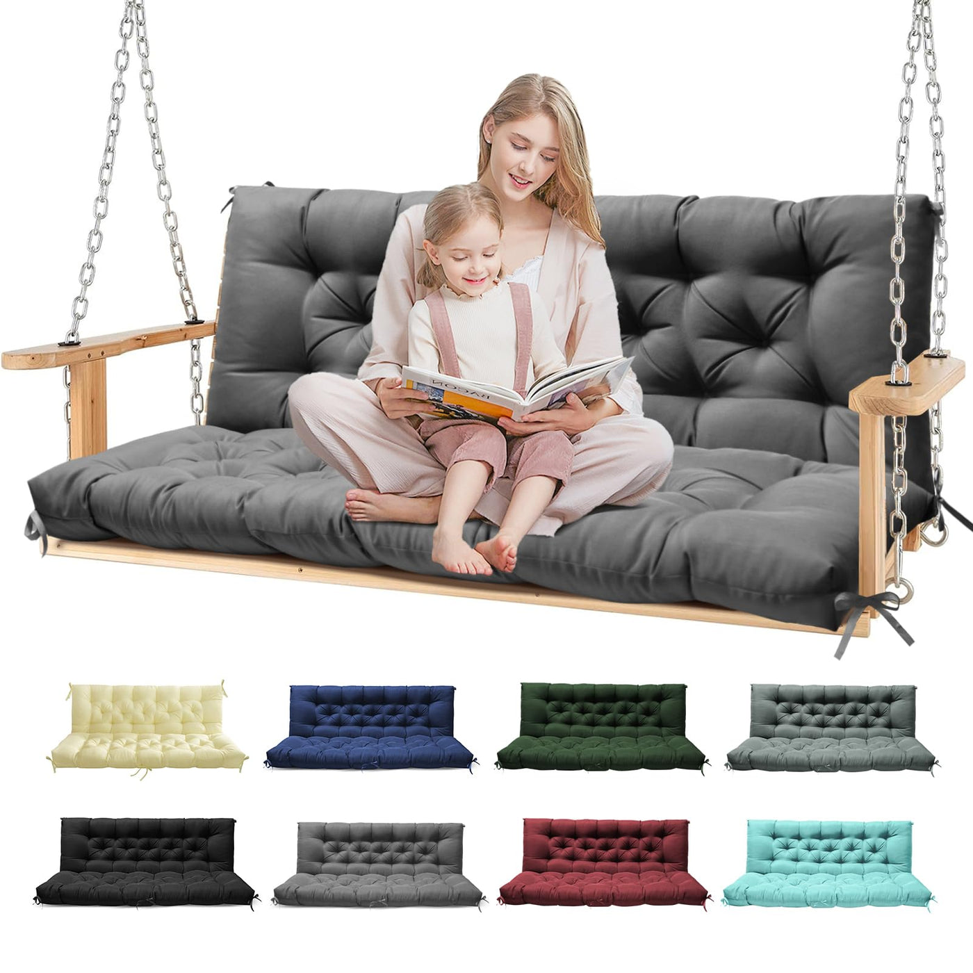 ? Comfort Filling: This Replacement Porch Swing Cushion Is Filled With High-Density Memory Crushed Foam (5 Inches Thickness), Compared To The Cotton Filled Swing Replacement Cushions On The Market, It Is Thicker And More Durable, Fits Snugly To The Body Shape, Effectively Relieves Pressure Spots, And Remains Comfortable For A Long Time. ? Quality Waterproof Fabric: The Outer Layer Of The Outdoor Patio Swing Cushion Is Made Of Waterproof And Uv Resistant Oxford Fabric, Which Can Resist The Changeable Outdoor Weather, And The Color Is Durable And Bright, Easy To Cope With The Change Of Seasons. When Water Drops Fall On The Swing Replacement Chair Cushion, It Will Float On The Surface, Simply Turn The Outdoor Swing Bench Cushion Over To Pour Out The Rainwater And Wipe The Remaining Droplets With A Paper Towel. ? Convenient Straps: The Thickened 2-3 Seater Swing Cushion Replacement Is Equipped With Reinforced Straps At The Corners, Easily Fixed To The Porch Swing Chair To Prevent It From Sliding Or Moving During Use, Easy And Quick To Install And Remove. Porch Swing Replacement Cushion Size Is 60X40X5 Inches, Suitable For Most Outdoor Swings, Garden Benches, Porch Seats In The Market. ? Packaging And Cleaning: The Patio Swing Cushion Is Vacuum Compressed Package, It Is Normal That The 3 Seater Swing Cushion Will Be Wrinkled For A Short Period Of Time After The Package Is Unpacked. Simply Pat The Swing Cushion Gently And Leave It Laying Flat For 2-5 Days To Restore Its Softness And Fluffiness. What'S More, These Porch Swing Cushions Outdoor Are Easy To Clean. Simply Wipe The Surface With A Wet Cloth And Air Dry, Your Replacement Outdoor Swing Cushions Will Be As Good As New! ? Reuse: Using The Same Fabric And Color For The Front And Back Of The Porch Swing Cushion Is The Equivalent Of Buying Two Bench Swing Cushions. You Can Use The Outdoor Bench Cushions By Turning Them Over Front And Back, Extending The Product Life.