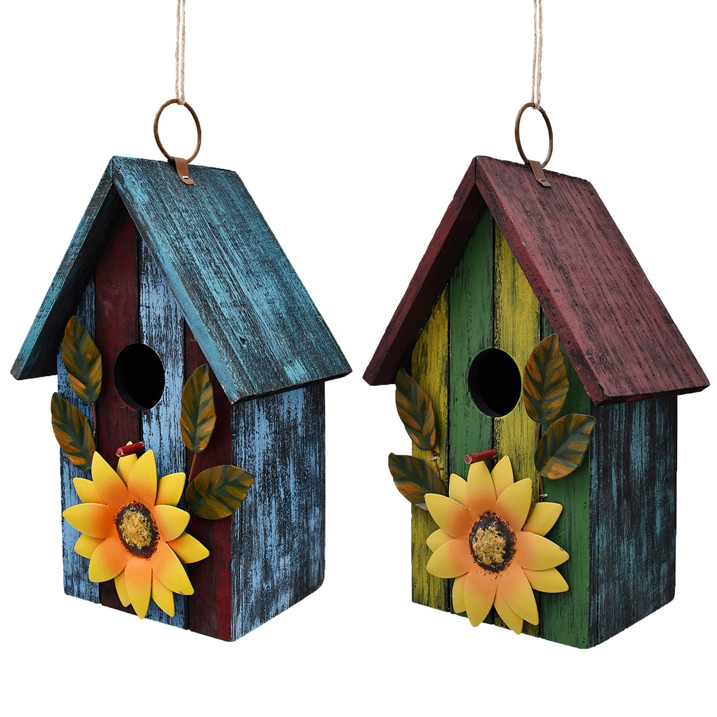 Waroom Home Wood Decorative Bird House For Outside Hanging Hummingbird House, Wooden Hand Painted Small Bird House Outdoors Gard