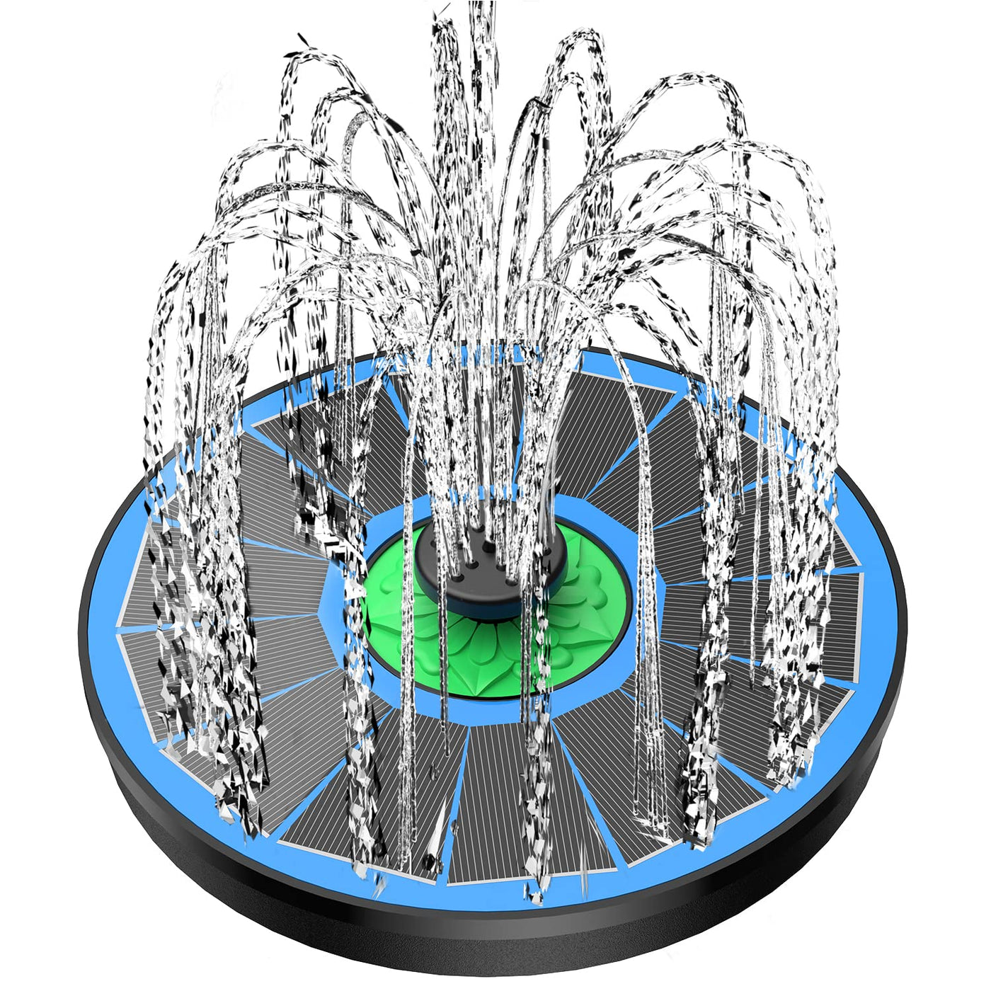 Yzert Solar Fountain Pump Full Glass Blue Panel No Battery, 3.5W Solar Bird Bath Fountains With 4 Fixed Rods & 8 Nozzles, 2023 B