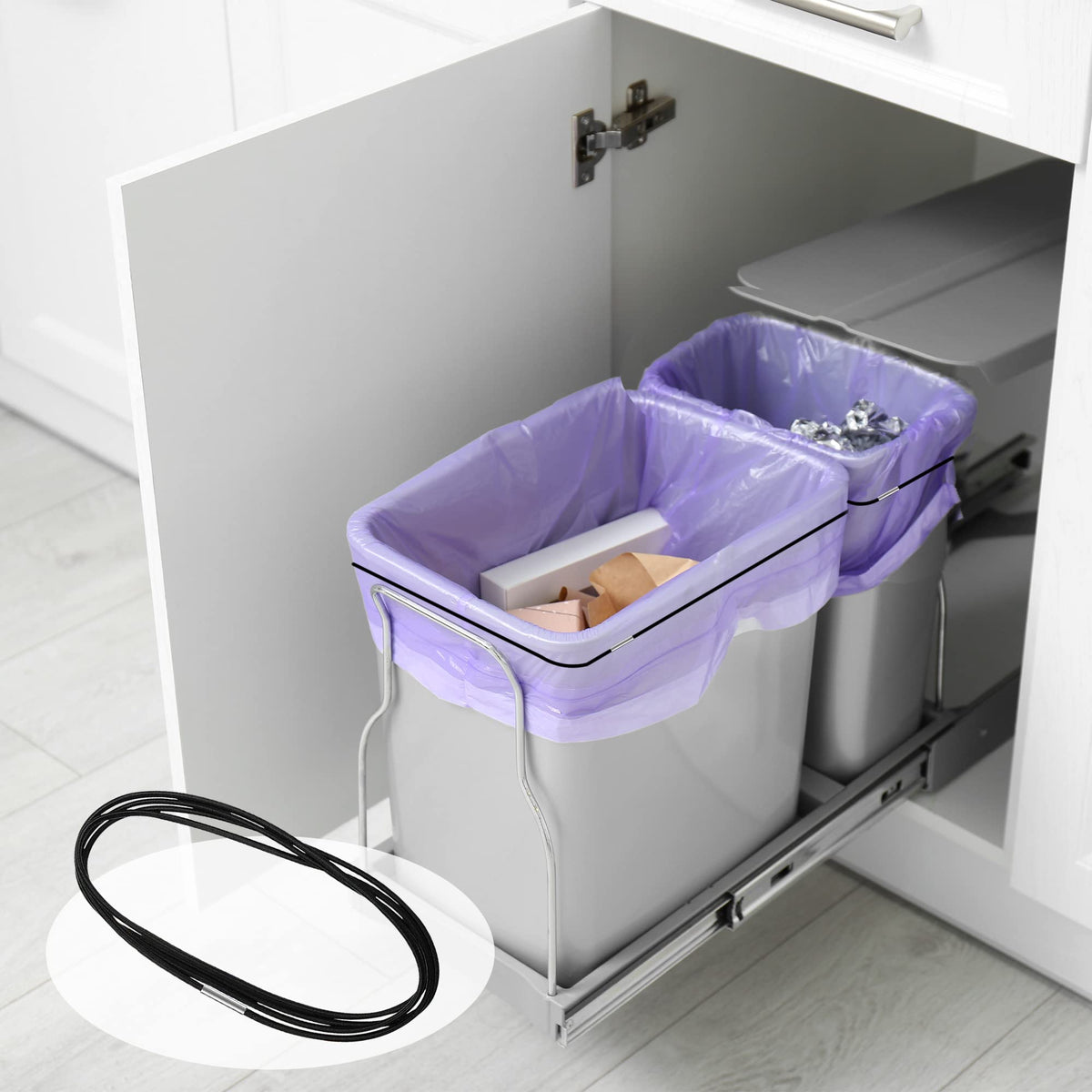 Q: What are some common applications for these trash can bands?A: In addition to holding garbage bags securely in place, these elastic bands can also be used for packing goods, securing books or mats, and are suitable for both indoor and outdoor use.