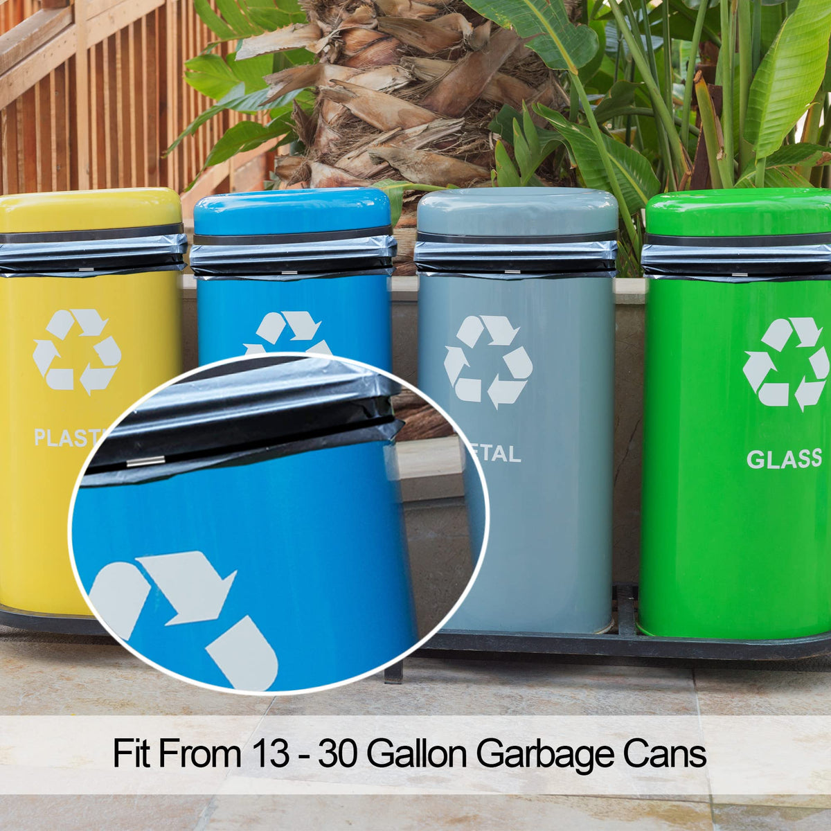 Q: What sizes of trash cans do these bands fit?A: These trash can bands are designed to fit garbage cans ranging from 13 to 30 gallons, making them versatile for various sizes of bins.