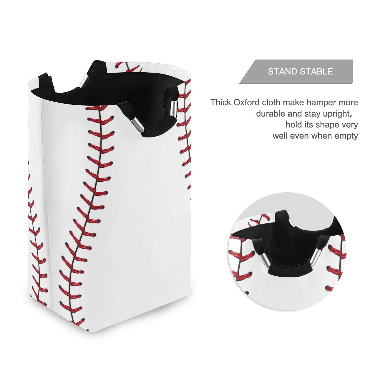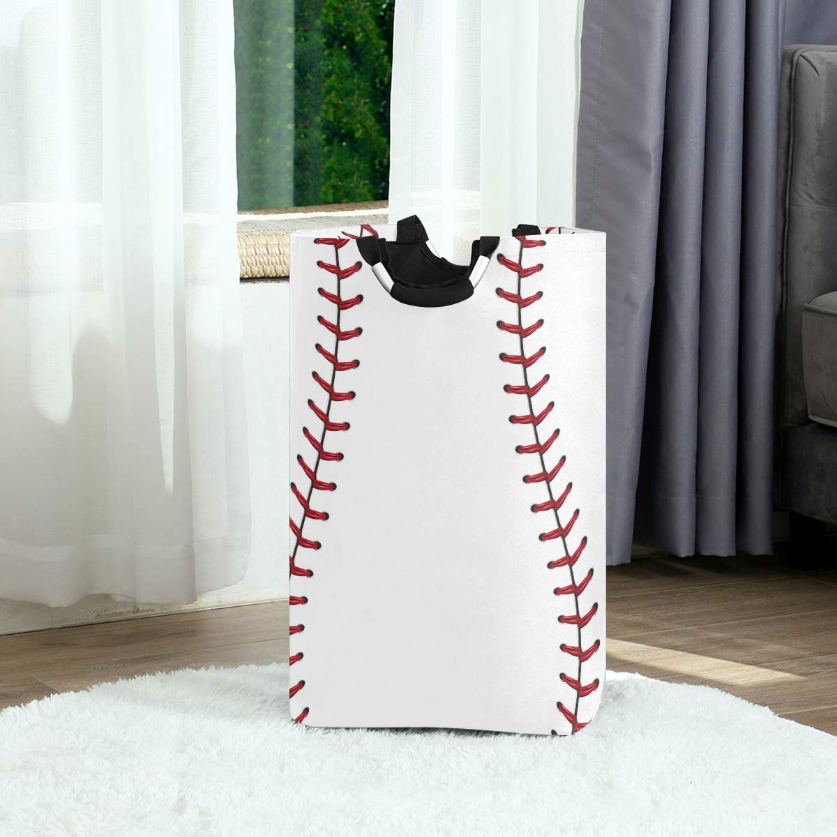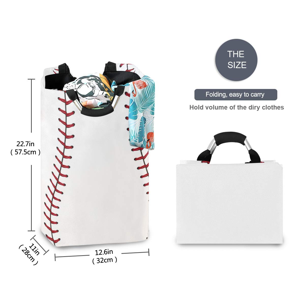 22.7'(H) Collapsible Laundry Hamper Baseball Print Laundry Basket Organizer Large With Handle Foldable Clothes Hamper