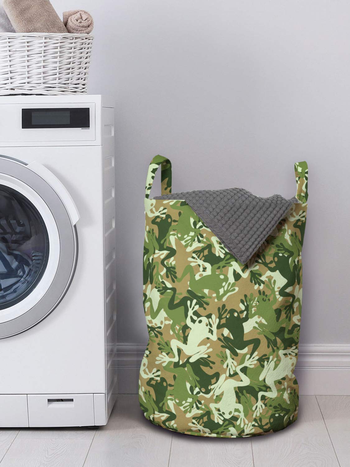 Ambesonne Animal Laundry Bag, Skull Camouflage Design Various Frog Pattern Different Tones Art Print, Hamper Basket With Handles