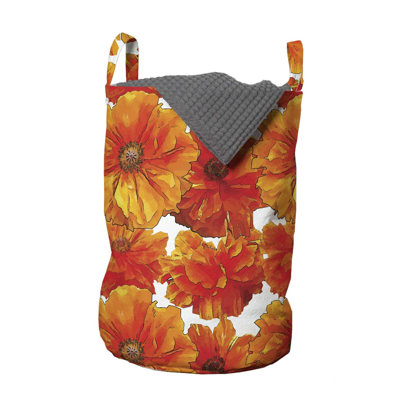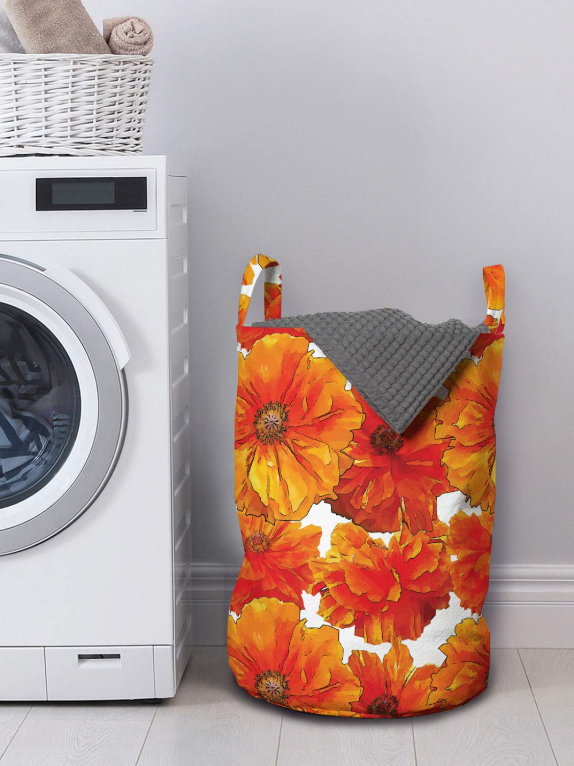 Ambesonne Orange Laundry Bag, Big Flourishing Bohemian Poppies On The Antique Background Graphic Design, Hamper Basket With Hand