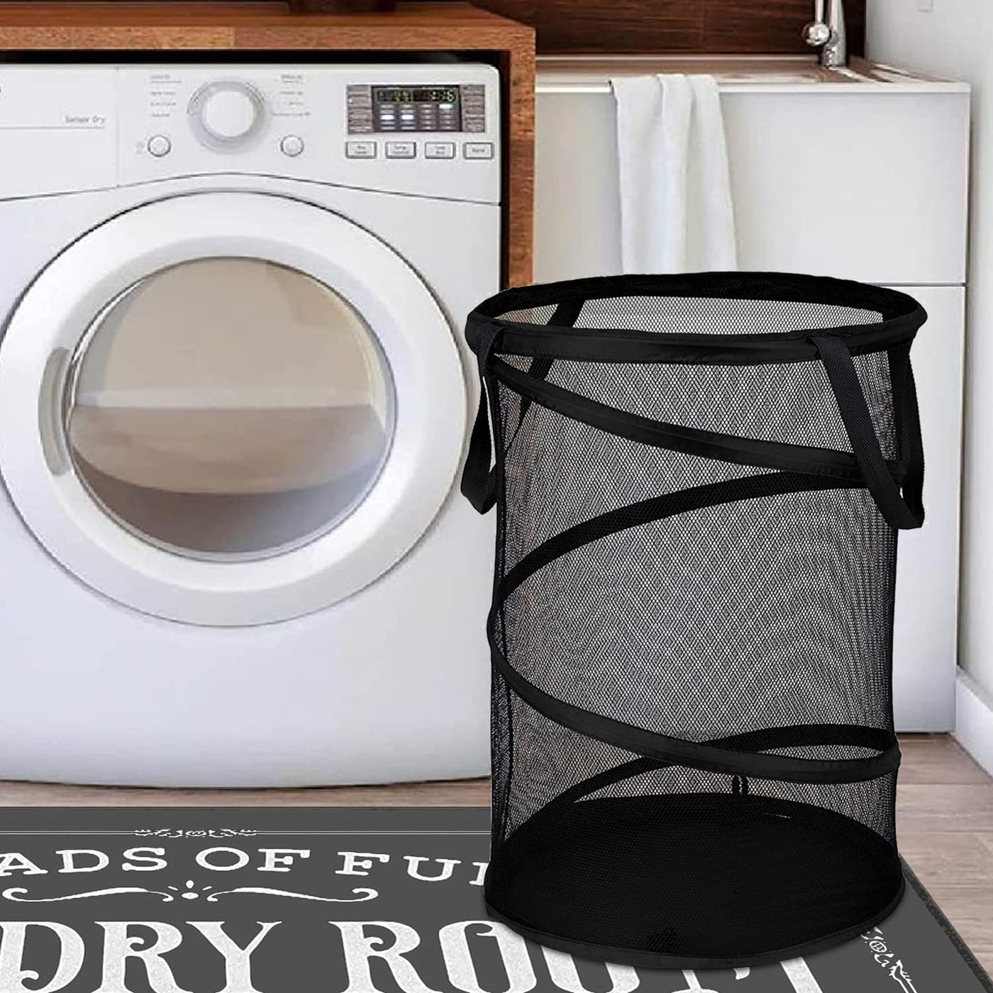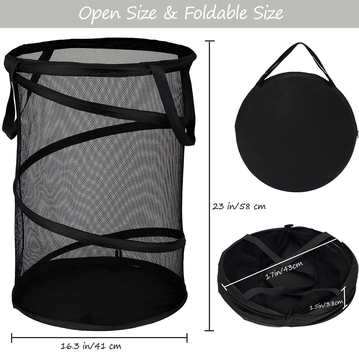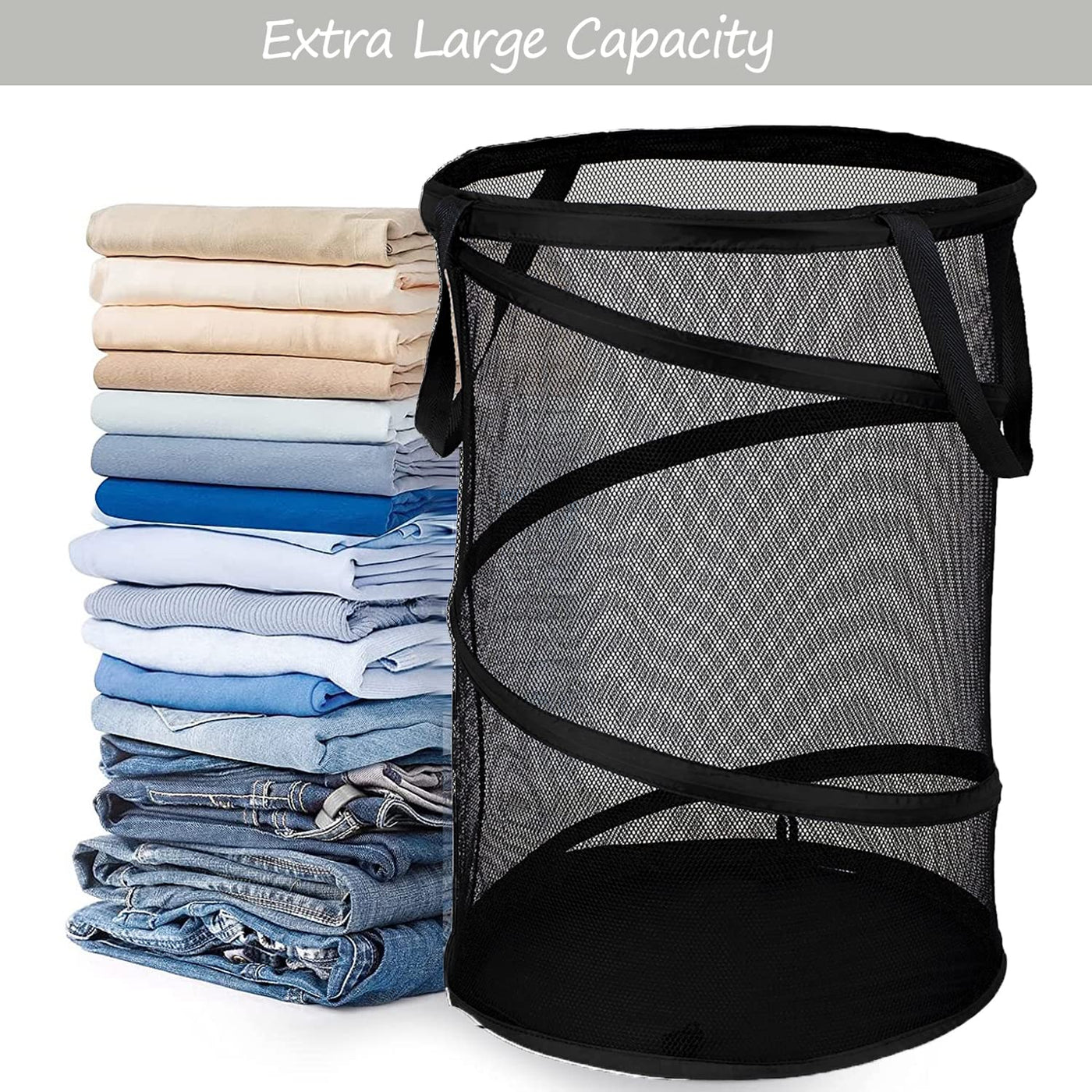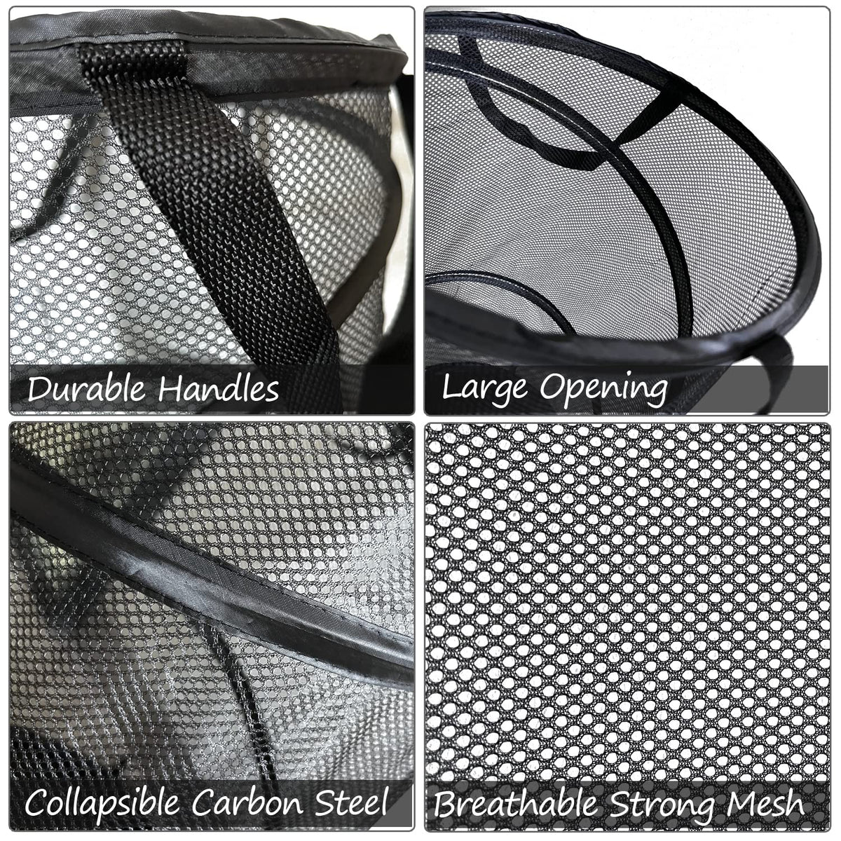Battoo Black X-Large Collapsible Laundry Basket Foldable Mesh Pop Up Hamper With Handles For Laundry Room, Bathroom, Kids Room,