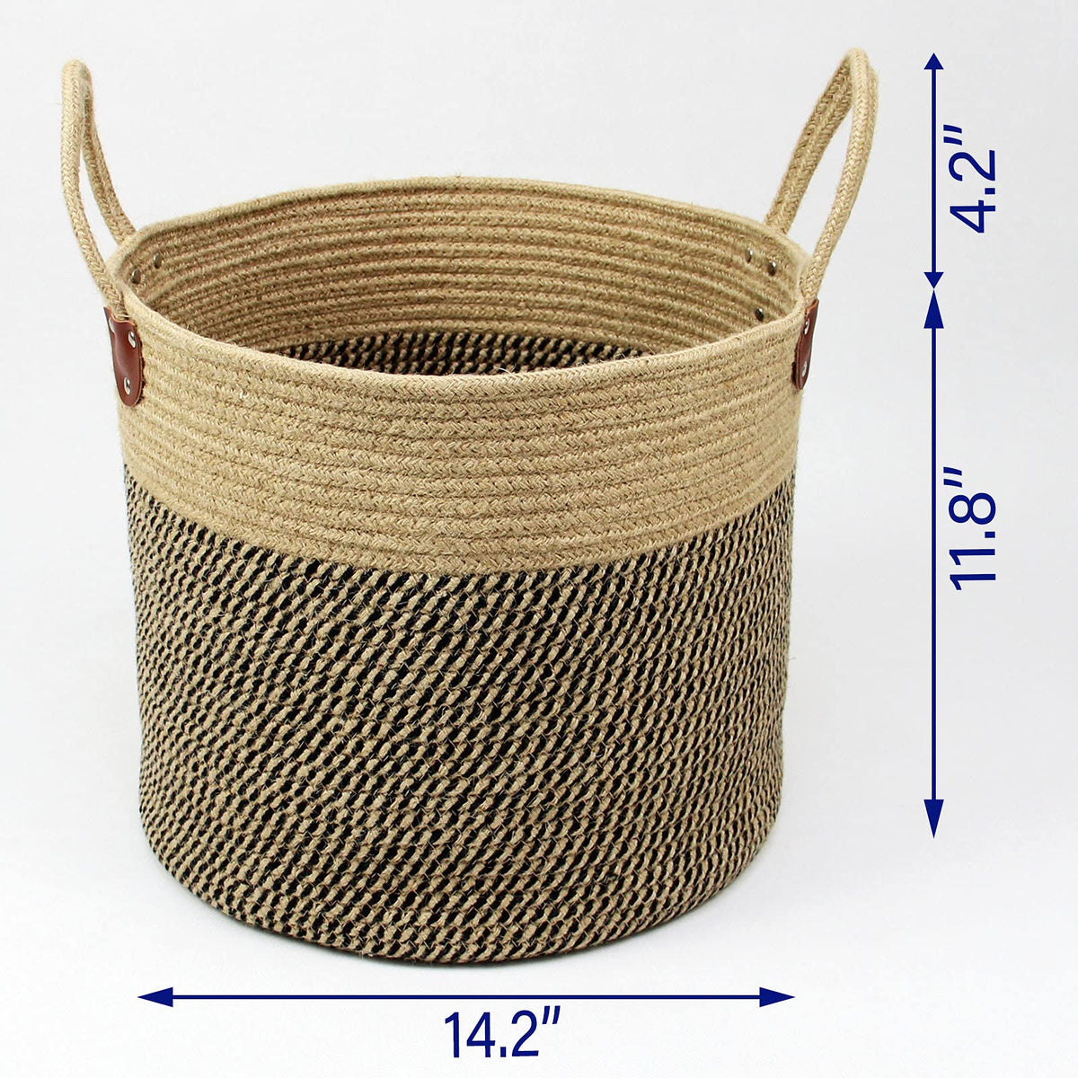 Size: 14'' X 14'' X 12''Inches.Color: Black And Jute, Fit For Many Occasion Application: For Store All Kinds Of Clothing, ,And Other Articles.Fabric Reusable Baskets Are Easy To Grab And Carry Just About Anything.The Natural Jute Rope Laundry Basket Is A Good Choice For Laundry Room. Large Capacity Allows To Store A Week'S Clothes. Bring Great Convenience To Life, And Save More Time To Enjoy Life.The Soft Material Will Not Make Collisions And Scratches To Your Furniture And Wood Floor. Also Safe For You. The Basket Provides Extra Storage. You Can Keep It In The Bathroom, Living Room, Bedroom Or Any Corner Space. Make Your Room More Organized And Tidier.