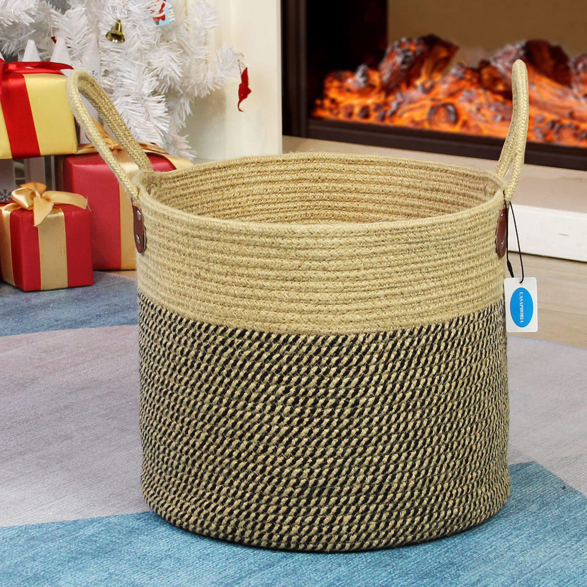 Q: Is the Casaphoria Jute Basket collapsible for storage?A: Yes, the basket features a collapsible design that allows it to be easily stored away when not in use, making it ideal for travel, dorms, or small spaces.