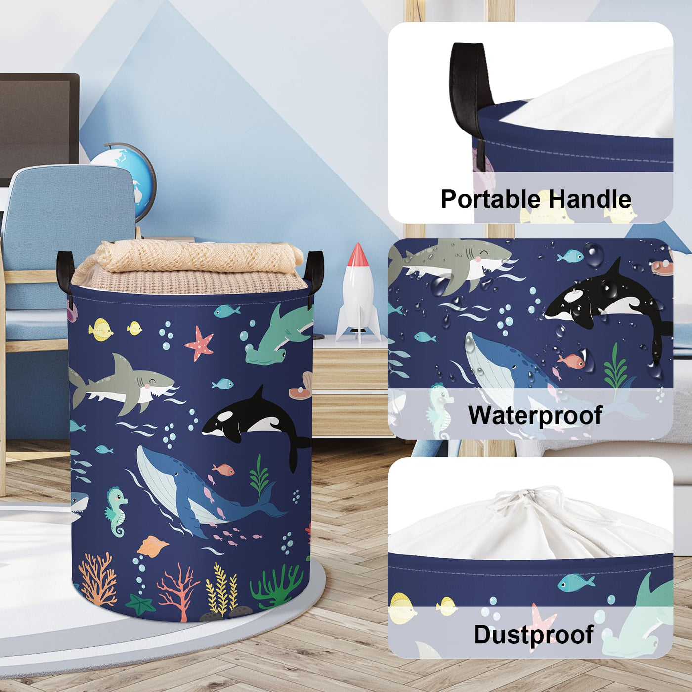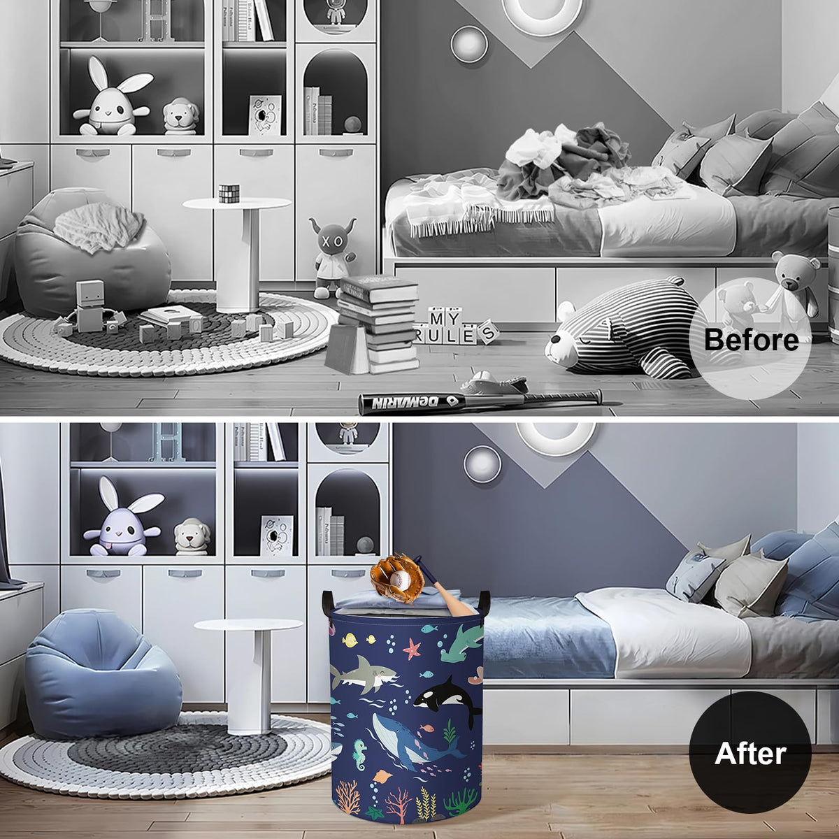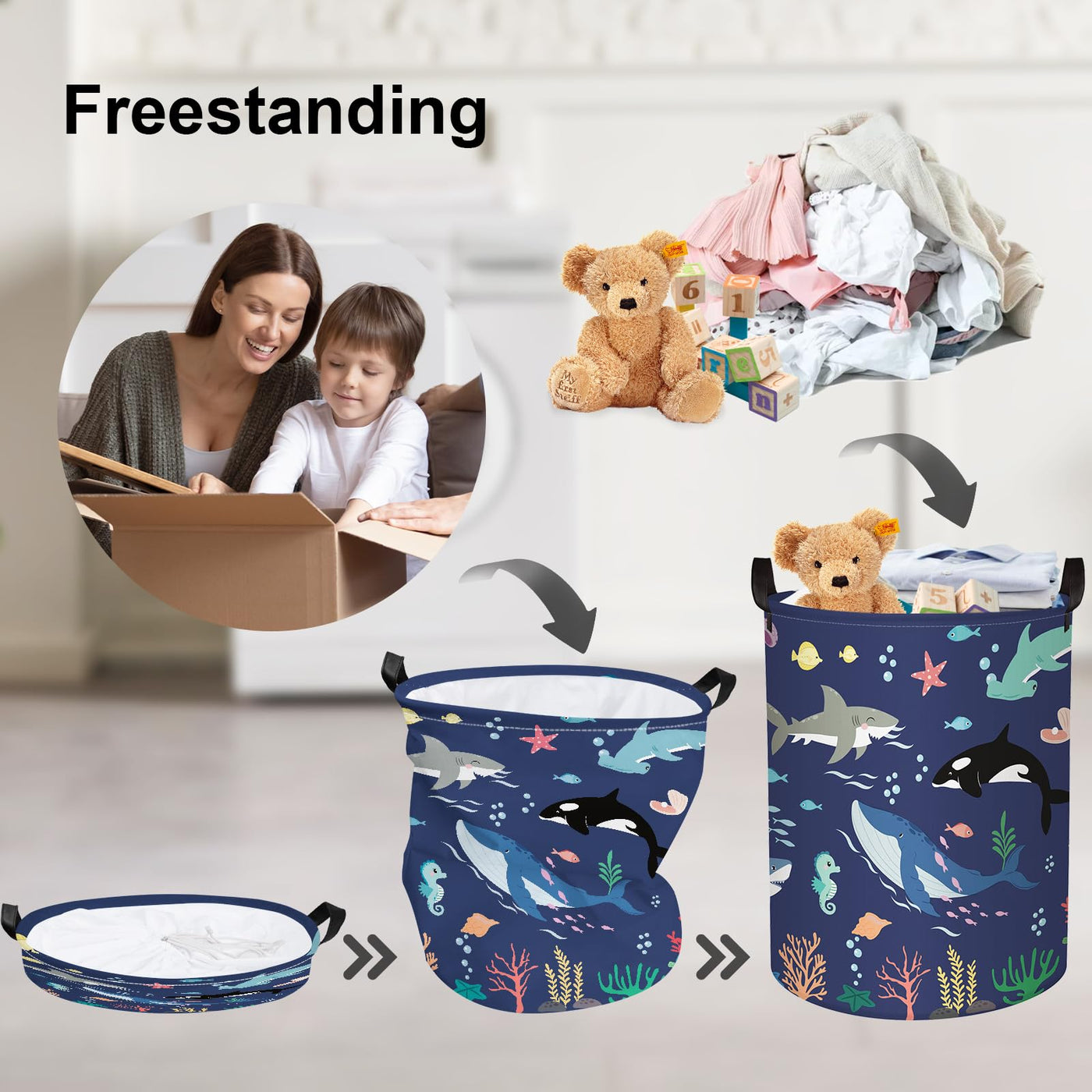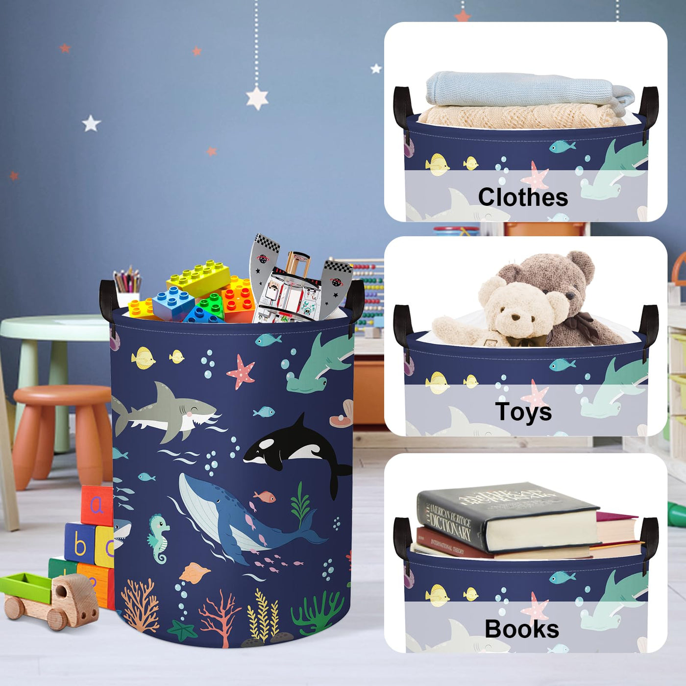 Clastyle 45L Sea Shark Turtle Octopus Laundry Basket Waterproof Pool Beach Towel Blanket Basket For Kid Bedroom Collapsible Ocea