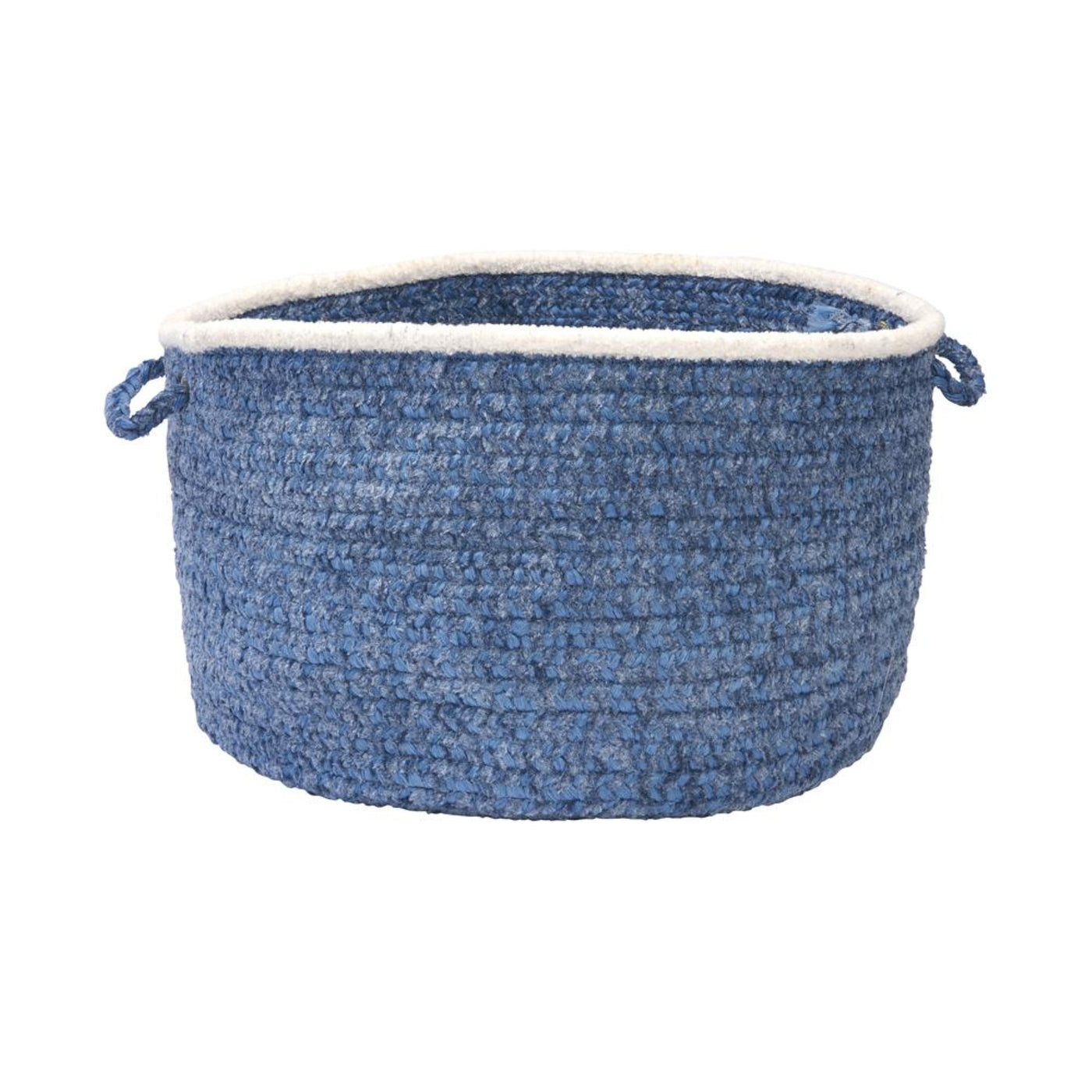 Simple, soft, stain resistant chenille gets a little makeover with a crisp white accent. This braided storage basket is perfect for indoor spaces like a bathroom, playroom or bedroom, yet durable enough to use outdoors too.