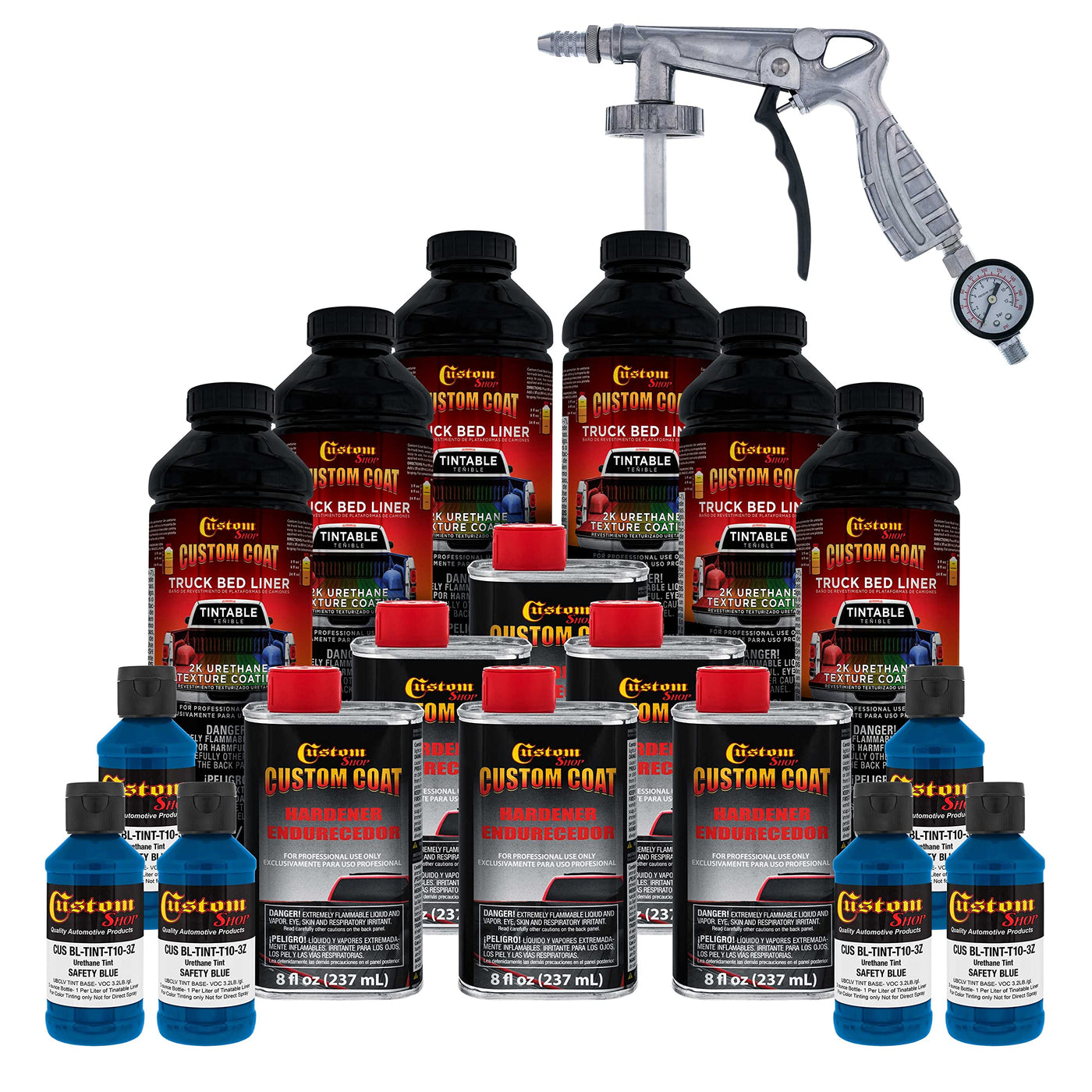 Custom Coat Safety Blue 1.5 Gallon (6 Quart) Urethane Spray-On Truck Bed Liner Kit With Spray Gun And Regulator - Easy Mixing, S
