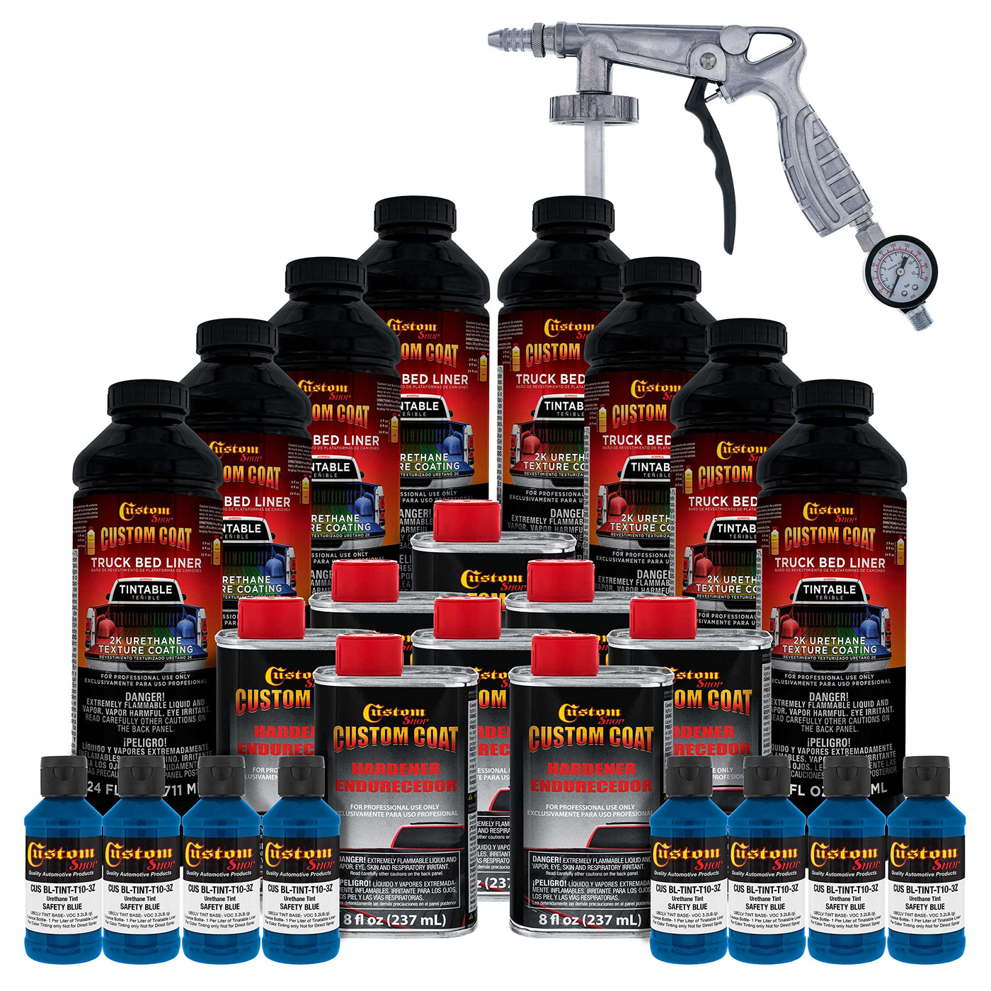 Custom Coat Safety Blue 2 Gallon (8 Quart) Urethane Spray-On Truck Bed Liner Kit With Spray Gun And Regulator - Easy Mixing, Sha
