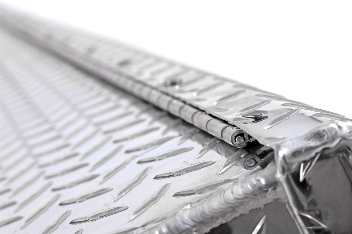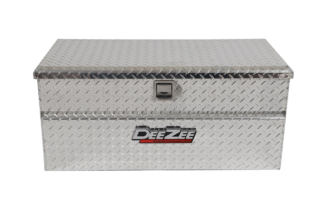 With Easy-To-Use Release Handles On Either Side, The Red Label Series Represents Dee Zee S Line Of Standard Thickness Diamond Tread Aluminum Tool Boxes Built To Offer High Strength And Great Value. Dee Zee S Red Label Black Diamond-Tread Utility Chest Tool Box Is Built Big And Square When Bulkier Equipment Needs To Be Protected. From The First Time You Open The Lid, You Ll Be Impressed With How The Red Label Black Diamond-Tread Utility Chest Tool Box Eliminates The Headache Of Hinges That Bind When Lids Are Pulled From One Side. Instead, One Integrated Hinge Spans The Entire Width Of The Lid So Opening And Closing Is Easy And Precise. Additionally, Gas Struts For The Lid Allow It To Glide Up With Dampened, Jewel-Like Smoothness. So When You Want It Open, It Stays Open Without Falling On Your Fingers. And When You Want It Shut, It Stays Shut Without Loosening Because You Can Adjust The Level Of Clamp Down Tightness, And The Interior Will Remain Sealed Without Allowing Moisture And Dust To Creep In.Red Label Signifies Standard Thickness .056 Aluminum Construction With Textured Diamond Tread Patternbox Is Designed To Mount On The Front Of Your Bed Floordiamond-Tread Pattern Aluminum Is Coated With A Protective Layer Of Black Powder Coat Finish To Guard Against Chips And Scratchesgas Shocks Allow Lid To Glide Open Or Closed Smoothlyremovable Plastic Tray Keeps Smaller Items Organizedself-Adjusting Latches Allow The Toolbox Lid To Click In Place Tightly With The Dampened Feel And Security Of A Well-Made Bank Doorrubber Gasket Seals Keep Moisture And The Elements Outlid Strikers Can Be Adjusted To Customize The Tightness Of Rubber Gasket Compression When The Lid Is Shutlimited Lifetime Manufacturer Warranty On Aluminum, 1-Year Warranty On Outer Finishproudly Manufactured In The United States