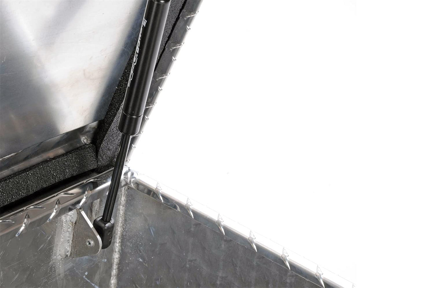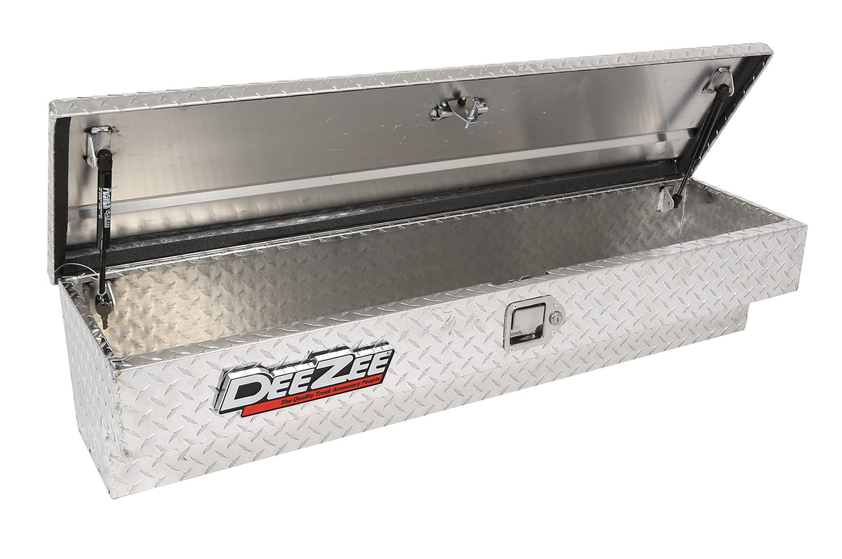 Dee Zee Tool Box - Red Label Side Mount Boxes. Constructed Of Heavy Duty Brite-Tread Aluminum. Crown Style Lid For Superior Rigidity. Other Features: Lockable Stainless Steel Paddle Handles, Dampened Gas Shocks, Closed Cell Foam Gasket, And Self-Adjusting Strikers. Great Storage By Themselves Or Matched With Our Crossover Toolboxes.