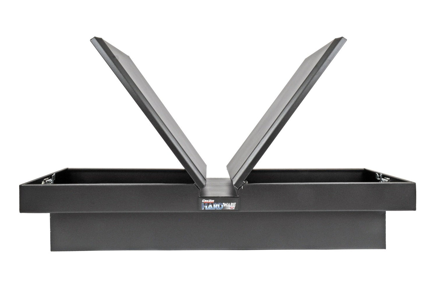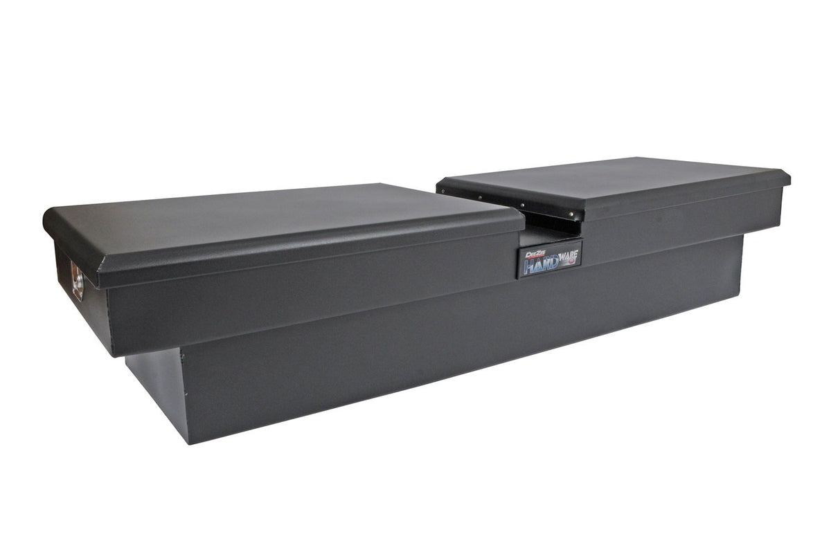 Dee Zee Tool Box - Hardware Series Double Lid (Gull Wing) Crossover. Constructed Of Heavy Duty Steel. Protected By Texture Black Nrt (No Rust Technology) Rust Inhibitor Powder Coat Finish. Crown Style Lid With A Full Pan Double-V Stiffener For Superior Rigidity. Other Features: Lockable Stainless Steel Paddle Handles, Dampened Gas Shocks, Closed Cell Foam Gasket, And Self-Adjusting Strikers. Removable Plastic Tool Tray To Help Keep Small Items Organized.