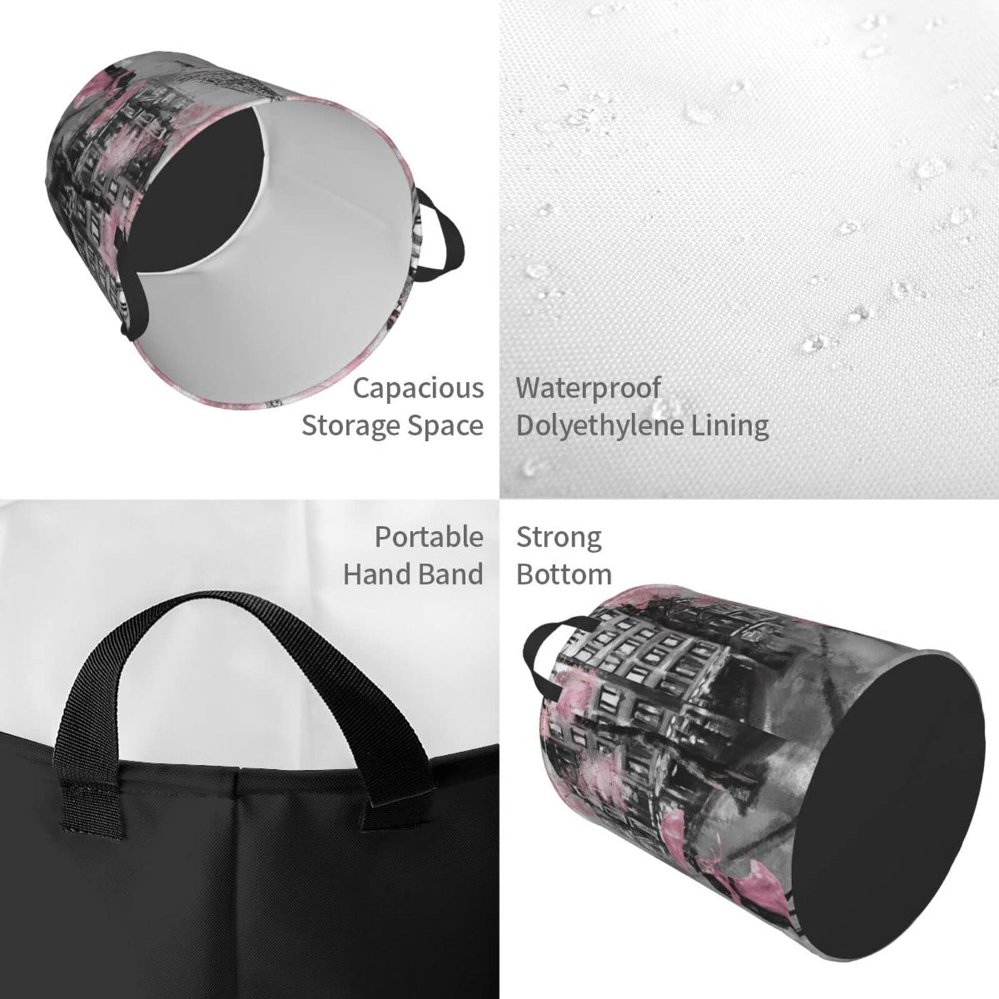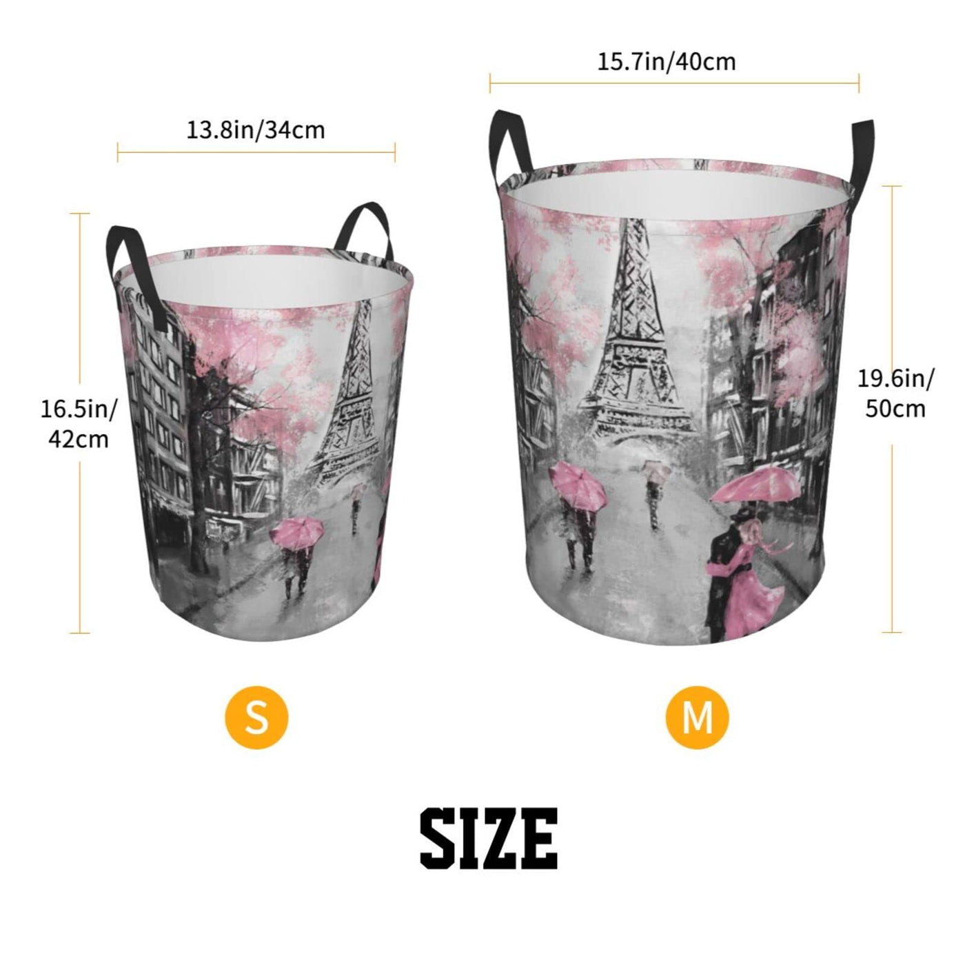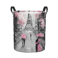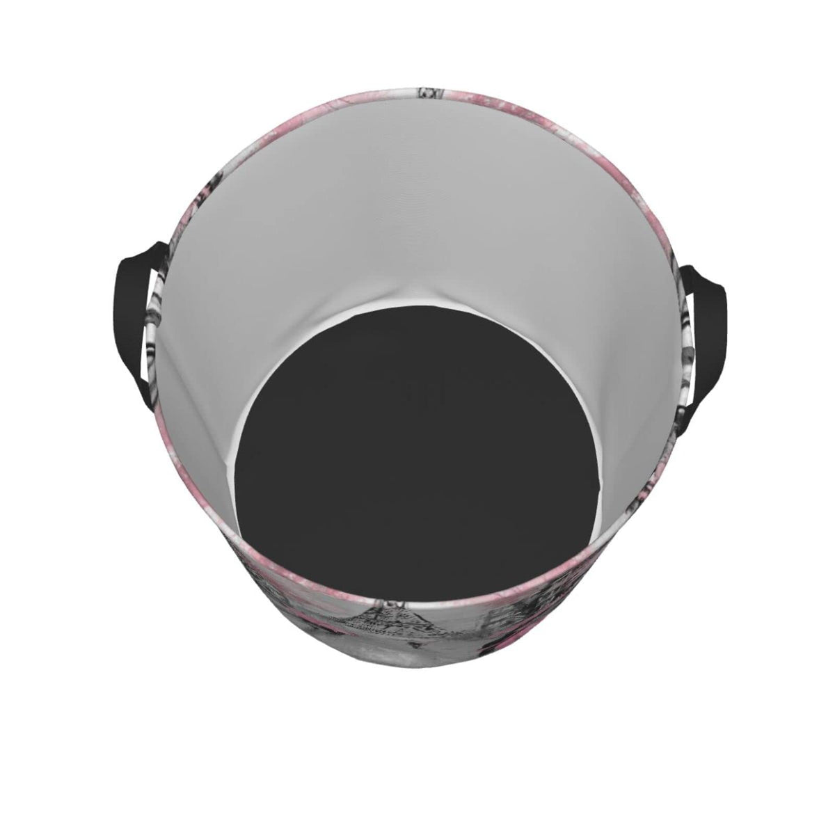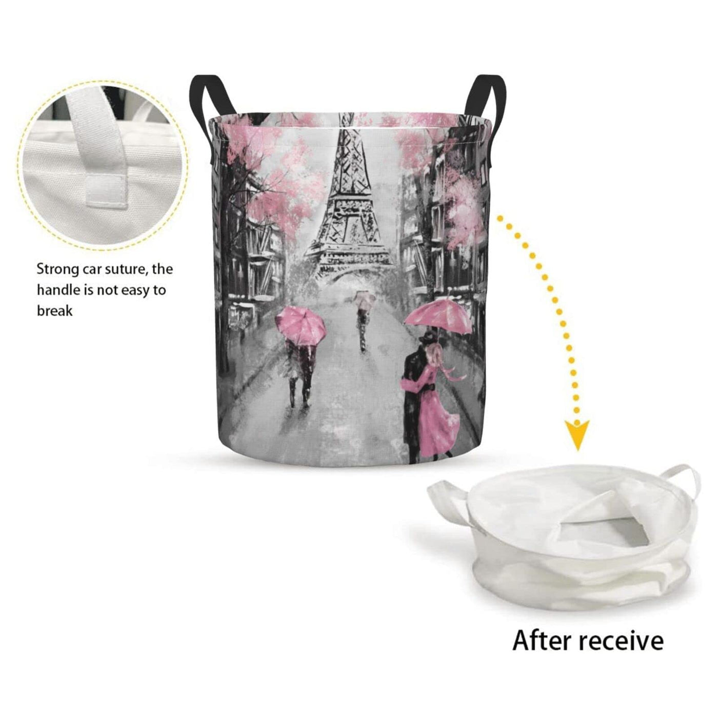 Dujiea Eiffel Tower Pink Lovers In Paris Laundry Basket Round With Handle, Collapsible Foldable Canvas Storage Bin Dirty Clothes