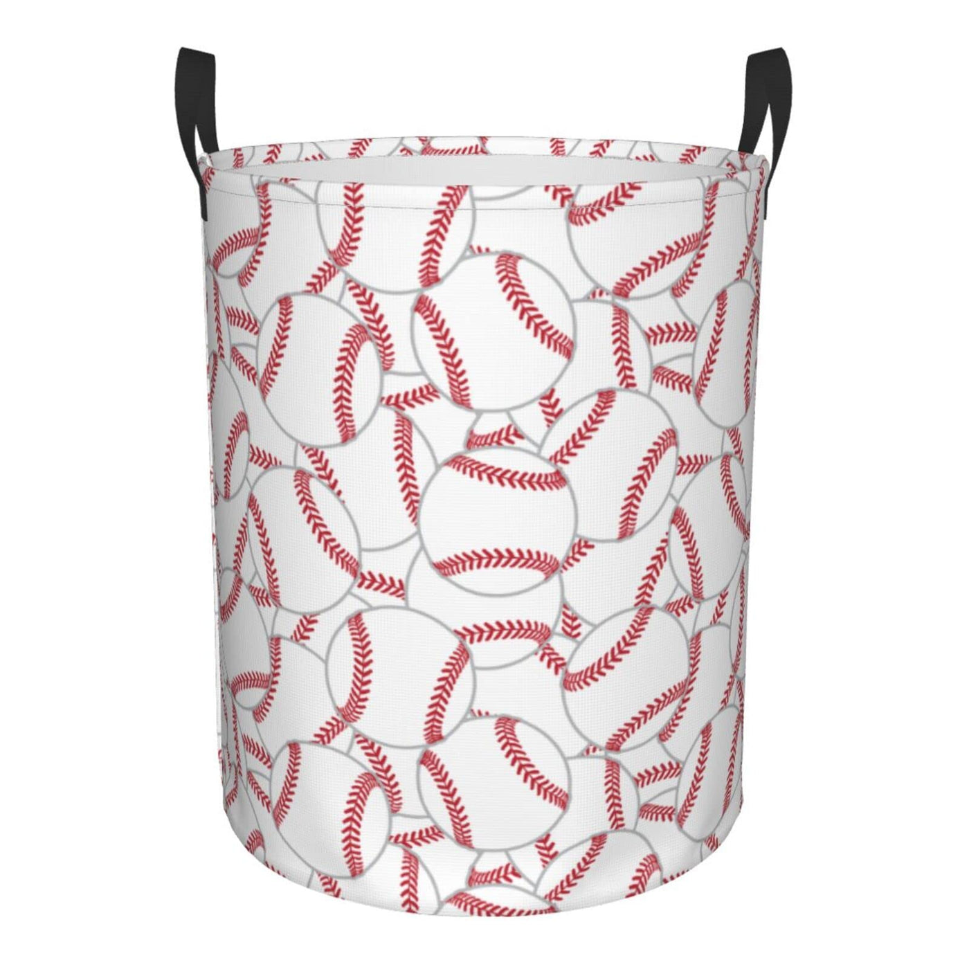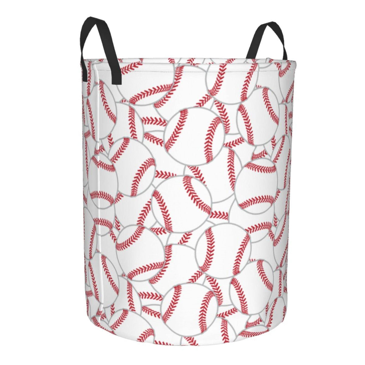 Gbuzozie 38L Round Laundry Hamper Baseball Texture Storage Basket Waterproof Coating Organizer Bin For Nursery Clothes Toys