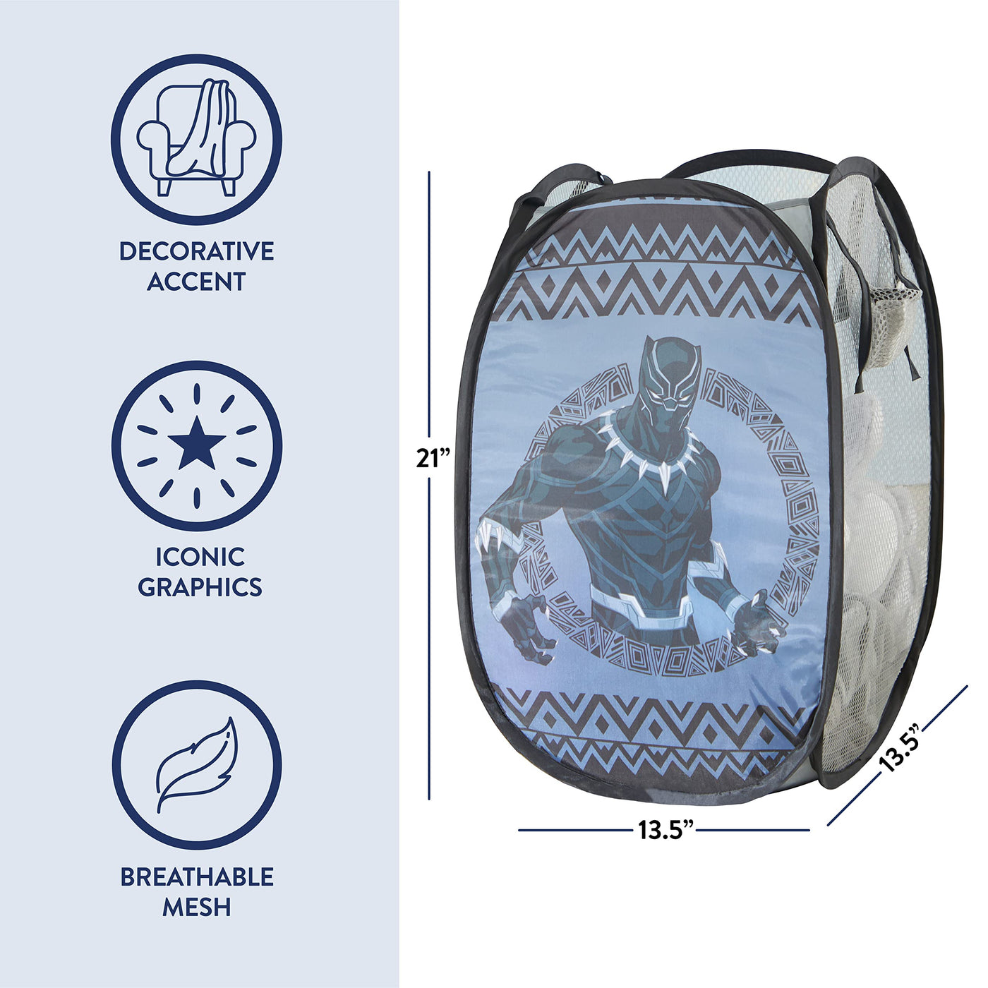 Idea Nuova Marvel Black Panther Pop Up Hamper With Durable Carry Handles, 21'' H X 13.5'' W X 13.5'' L