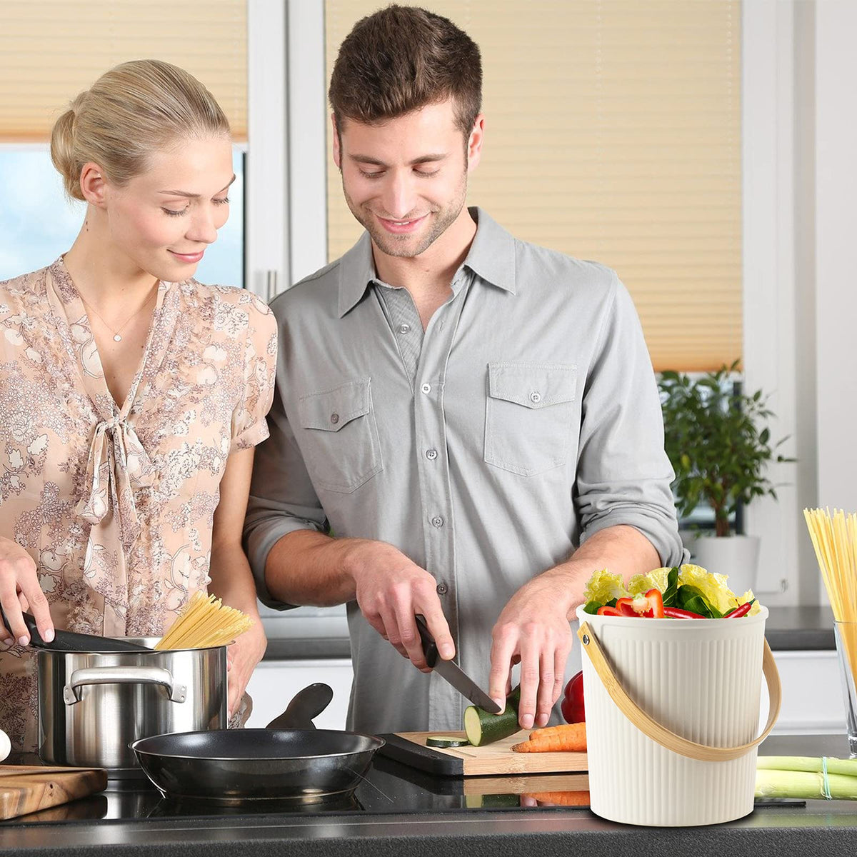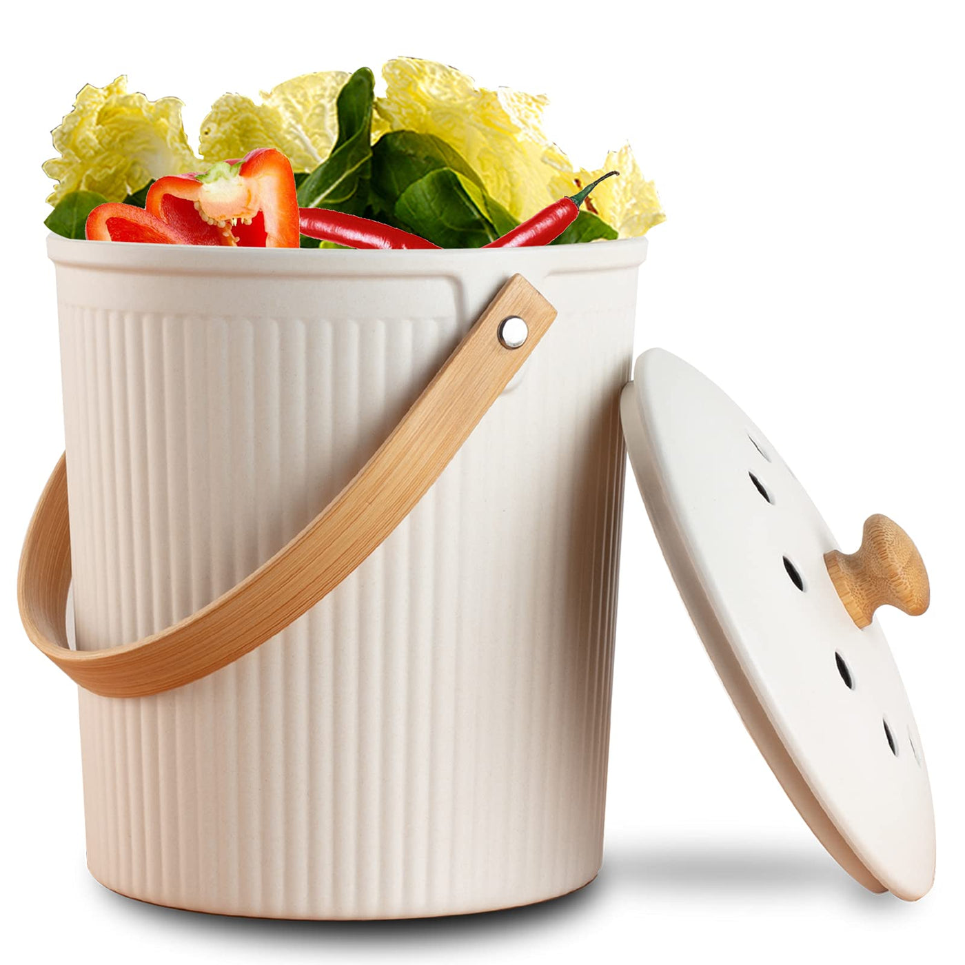 Kitchen Compost Bin, Lalastar Countertop Compost Bin With Lid, Made Of Sustainable Bamboo Fiber, Odorless Kitchen Compost Bucket, 1 Gallon, Cream