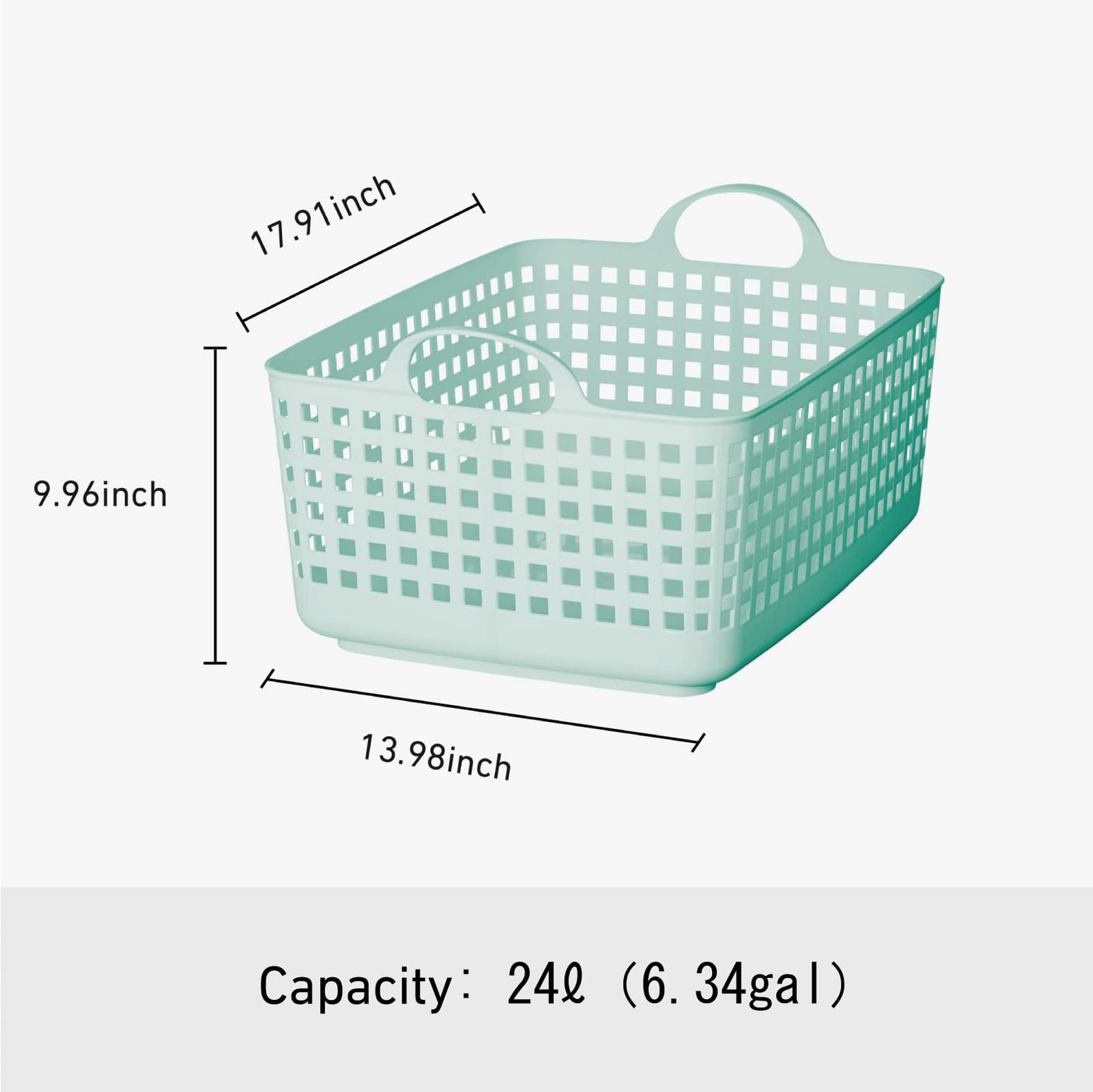 Q: What are the dimensions of the Like-it SCB-7 basket?A: The Like-it SCB-7 basket measures 13.98 inches in length, 17.91 inches in width, and 9.96 inches in height.