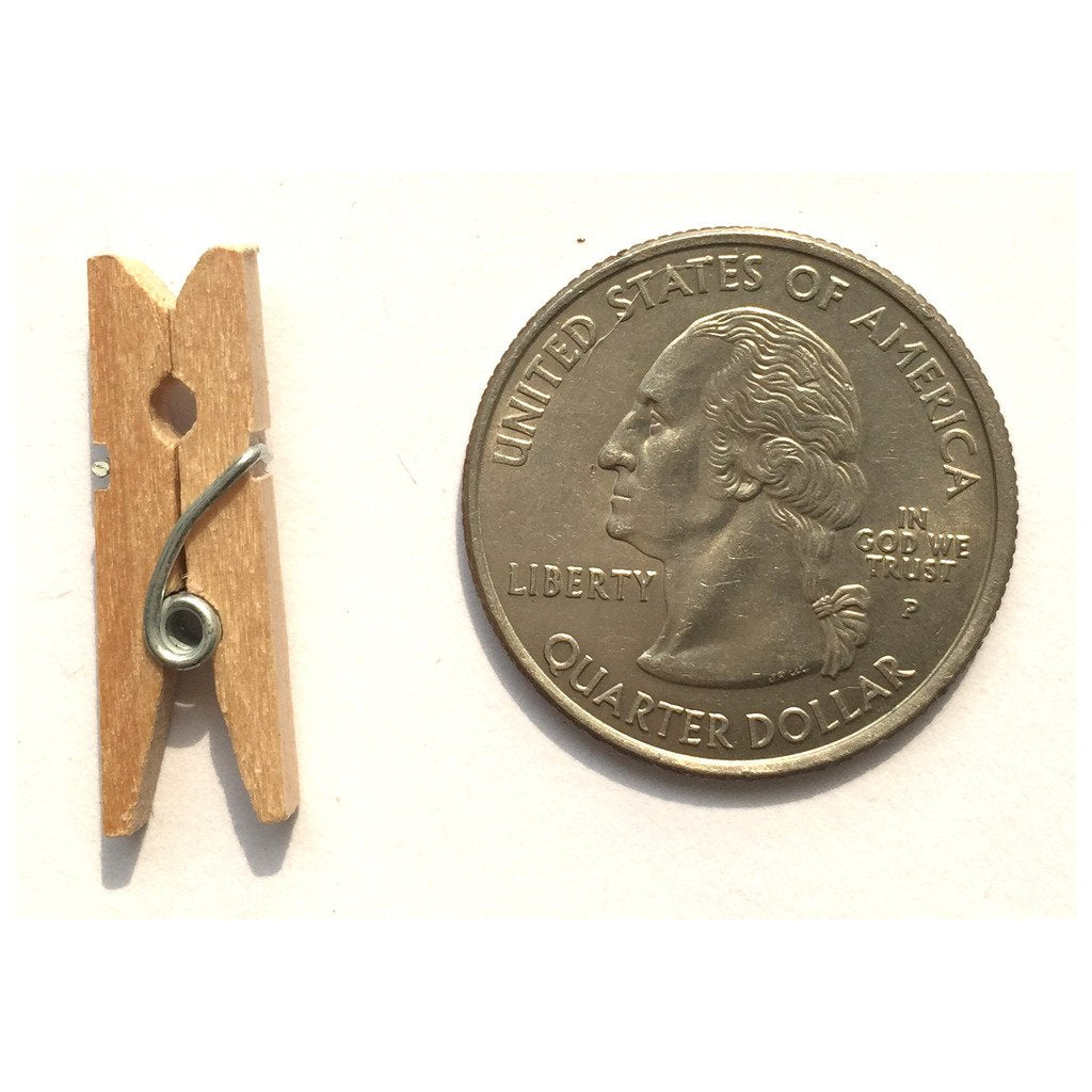 Q: What are the dimensions of the LWR CRAFTS Wooden Mini Clothespins?A: The LWR CRAFTS Wooden Mini Clothespins measure 1 inch (2.5cm) in length, 1/4 inch (0.7cm) in width, and 1/8 inch (0.3cm) in thickness, making them perfect for crafting and decorative uses.
