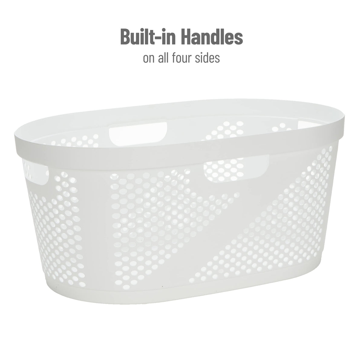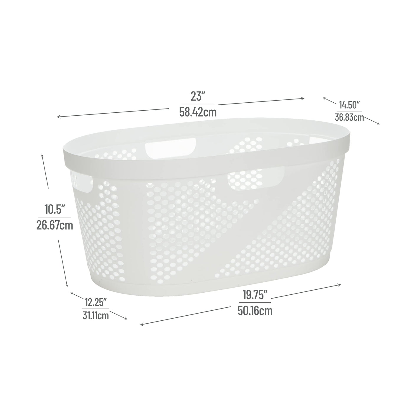 Mind Reader 40L Laundry Basket, Clothes Hamper, Ventilated, Plastic, 23''L X 14.5''W X 10.5''H, Set Of 2, White