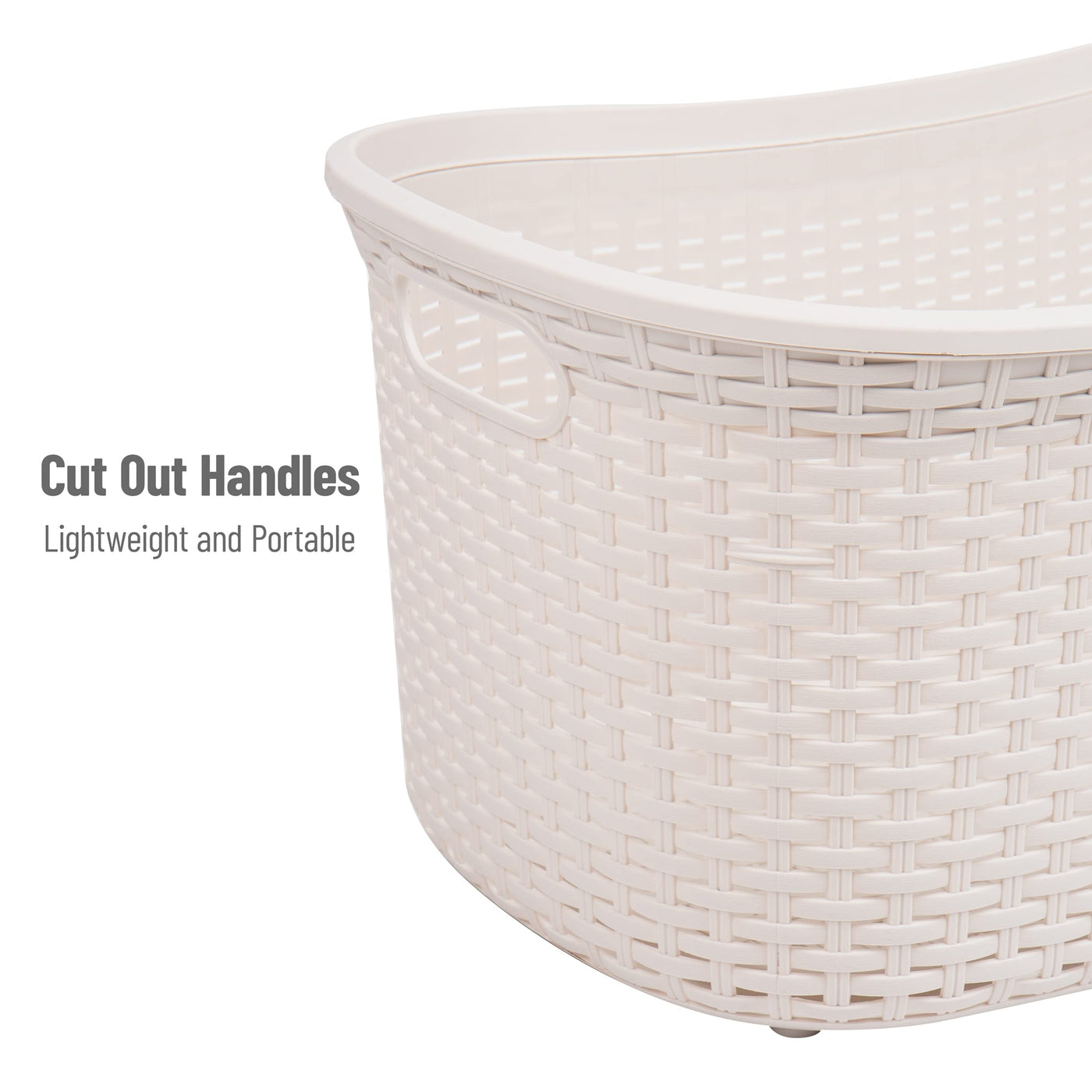 Mind Reader 40L Laundry Basket, Clothes Hamper, Wicker Design, Plastic, 23''L X 14.5''W X 11''H, Set Of 2, Ivory